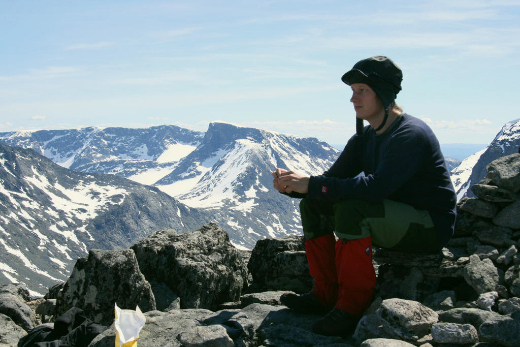 Man trenger ikke være stor for å gå i fjellet. Vi har en Cairn Terrier på 2 år, som allerede har vært på Bukkhåmåren, Hurrbreatinden, Veslebreatinden, Nørdre Svartdalspiggen og Tverrbottindene. Han liker seg veldig godt i fjellet. Regor