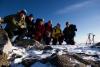 Fredag: Vi var ein gjeng på 6 frå NTNUI Ski og Fjellsport, som skulle på bretur. Eller som vi sa på turmøtet: "Blir det fint vær, så kan vi vel lure oss opp på ein topp eller to"... Ved avreise Trondheim på fredag var vermeldinga for Sognefjellet veldig lovande for laurdag formiddag, men kl 14 skulle det skye til. Difor vart det fatta vedtak om "alpin start", og vekkerklokka vart stilt til 0500 etter middag og litt småprat om ruteval. Laurdag: Det var ein kald trekk i min ende av teltet alt før vekkarklokka kima, og eg var glad for at det var på tide å stå opp og komme seg igang. Og lykke! Rett nok var det kaldt å gå ut for å pisse i stilongsen, men himmelen var skyfri og månen kasta skuggar! Frukost, pakking og slikt vart overstått, slik at vi var klar for avmarsj litt over 6. Første utfordring Alt ved parkeringa på Krossbu møtte vi dagens første utfordring. Brua låg demontert for vinteren, og steinane i elva hadde kragar av is! Det siste ein ønskjer ein kald septembermorgon er å bløyte sko og sokkar før turen er igang, men over måtte vi og over kom vi tilslutt. Med ein stadig lysare himmel over oss, dukka meir og meir av kvite Hurrung-fjell opp etter som vi vann høgde opp mot Leirbrean/Bøverbrean. Eit vakkert syn i morgonsola! Oppe ved breen slo vi raskt fast at det såg greit ut å gå utan tau. Litt oppe på breen, i konversasjon over kartet, vart vi og einige om dagens rute: Travers av dei Søre Smørstabbtindan, med ein avstikkar på Gravdalstinden, det heile avrunda med ein familie Bjørnar om veret tillet det. Som sagt, så gjort: lett trav over breflata, med fotopausar etterkvart som sol og tindar dukka opp. Sørvestre Smørstabbtinden Omlag kl 9 nådde vi toppen av denne lette, men flotte toppen. Forholda var perfekte på breen, og like flotte på toppane og ryggane; Tørr nysnø på tørr stein. Ingen lumsk is som lura i ura her nei! Toppfoto vart teke med sjølvutløysar, og vi fortsette ned i skaret mot Søraustre for ein rask rast. Her var det ly, sol og eit og anna lemen. Sjokolade og varm toddy gjekk ned på høgkant, før vi fortsette over skaret, og opp langs den imponerande vindgryta under "vesle Gravdalstinden" Gravdalstinden Vi kom opp på ryggen mellom Gravdalstinden og Søraustre Smørstabbtind. Og følgde ryggen bort til vesle. Her tok vi ned på breen, og stakkatogjekk oss opp snøbratta ganske nære ryggen. Vidare var det grei skuring til topps, og fleire toppfoto. Utsikta fra Gravdalstinden er imponerande! Det syntes tydeligvis og eit ravnpar som sat på toppvarden då vi kom. Under oss stupa det bratt ned på breen og vidare ned i Gravdalen, der isen låg langs land. Falketind kneisa i det fjerne, allereie med ei linseforma sky som ein kalott over seg. Søraustryggen Vi gjekk så tilbake samme vegen som vi kom, og fortsette over Søraustre Smørstabbtindan. Lett opp til 2033, og så vidare. Her vil den observante bibellesar dog oppdage at ein liten gul trekant har teke residens. Denne vart i forskjellige stilar forsert av halve turfølgjet før fjerdemann oppdaga ein stor og laus stein. Han venta diskret til det var klar bane, og så for steinen flygande ned mot breen. Etter denne vesle vekkaren tok vi på hjelmen, og vi kunne fortsetje meir eller mindre udramatisk ut ryggen. Men i aust kraup skyene nærare og nærare. Storebjørn Vi kom greit ned på breflata igjen, og bestemte oss for å prøve på Storebjørn sjølv om himmelen tetna til, og vinden auka litt på. Den vanlege vegen opp til like under "tutten" som stikk opp på ryggen, no på god veg inn i skyene. Her skal eg innrømme at eg hadde mest lyst å snu, sidan eg ikkje er kjempefan av toppar og uver, men vi enda opp med å sele oss opp i tau og all slag krimskrams og kom greit til topps. Her var det jo overraskande nok lite å sjå, så vi kom oss like raskt ned igjen. Ned igjen på breflata til Smørstabbreen tok vi ut ein kompasskurs litt vest for Kalven og labba i veg inn i grauten. Vi tilbakela omlag to kilometer inne i han, før vi endelig kom ut under skylaget nede ved nordvestfoten. Herifrå og ned til innsteget var det berre å spasere, og vi fekk eit lite stykke følge av to lemen som må ha hatt ein striare tur enn oss. Etter kursen å dømme må dei ha komme fra Sørvestre Smørstabbtindan eller der omkring, og hadde kurs ned mellom brevatna under Leirbrean. Vi kan vel ikkje seie oss noko anna enn nøgde med så god uttnytting av finveret. Det var berre Storebjørn av toppane vi ikkje besøkte i sol. Dette burde og illustrere kor raskt veret skiftar i fjellet, det er jo ikkje så langt frå austraste av dei søre smørstbbtindane og over til Storebjørn...
