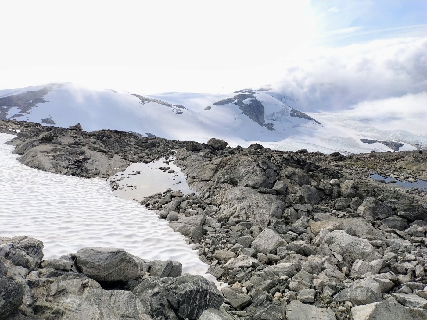 Hardangerjökul vatten ca 1-2 dl ca 500m från jökulkanten med redan sediment som sjunkit dvs gott klart vatten resten kokt.