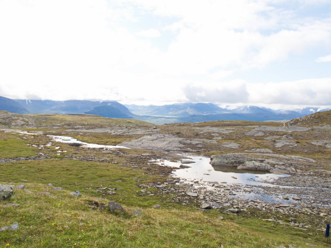 24. Start Abisko Turiststation mot Kårsavagge relativt brant stigning på smal stig delvis spångad upp igenom björkskogen,går förbi bästa Foto plats för ´Lapporten´Tt Tyvärr ligger min kamera Cannon G12 som anv till nästan alla bilderna i ryggsäcken utan tagen med telefon på 21 mp men mkt sämre än med 10 MP på kameran bästa bilderna tas i September med minimalt soldis som jag har på många av bilderna. Jag är fortfarande inne i Abisko Natioalpark med tältnings restriktioner och går vidare upp mot där björkskogen glesar ut och myggen skingras något vid rasterna som får tas ofta då jag har nära 30 kg i startvikt på ryggsäcken och träningen med ryggsäck på 15 kg hemma ej var nära verkligheten nu. Här i en glänta blir första lägerplatsen lite orutin och några extra myggbett före man är inne i tältet. Går längre in i Kårsavagge och utsikten blir bättre ovan björkskogen och rasterna blir ej samma myggplåga längre jag har med myggmedel men anv det aldrig då jag ej har så väldigt ont av betten om man avhåller sig från att klia och mindre fula sårskorpor som resultat jag hade med damasker som snöskydd men dessa låg i botten på ryggsäcken som skydd så isyxan ej går igenom botten av säcken trots gummi skydd,damaskerna skulle varit på när man tar på sig lägerskorna som skydd för fotleden över anklarna. Sel vid Vuolimus Gorsajervi Kårsavagge är en fin dalgång med blandad natur och fin utsikt. Mycket varmt och utan nyköpta hatten med stora brätten som när myggskydd behövs passar den bra med mygghuvan. Utsikt från tältplats 2 upp mot Kårsavaggestugan. Går över vadet vid stugorna och tar på mina skor märkta med supergripp men de har ej använts så mkt och blivit lite hårda i sulan och mygget alger på stenana och skorna känns som skriskor och med stugvärdens referens från samtalet han hade med våran nyblivna dubbla världmästare på 5000m och 10000m Nils van der Poel i minnet så gäller det att koncentrera sig trotts att jag har gångstavar för att hålla balansen. Tills nästa vad har de blivit bättre men torkar fortfarande sakta då de har bollstrad kant mot fotleden vid ankeln de flesta visar sig ha enklare tofflor med hälrem men de fungerar säme som lägerskor och fler myggbett men som bra komplement,tidigare har jag gått barfota eller i skalkängor utan strumpor och sockar. Vadet vid Kårsavaggestugan. Går upp leden mot Abiskojaure stugorna som är upp 450m på ca 2km. Utsikt från tältplats 3 ned mot Kårsavagge,tar en vilodag då det börjar göra ont lite över allt. Sover ut och passar på att tvätta kläder och äter lite extra och planerar rut nästa dag. Jag hade planerat för start i Kiruna och buss till Nikaloukta och gå upp mot Tarfala och vidare upp mot Högfjällsomådet men pga sämre väder där än runt Abisko som är bland det torraste områdena i Sverige krävs en ny plan för vandringen och endast karta och utan mobiltäckning med turförslag får man lägga lite tid på egen planering.