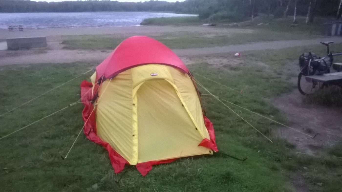 19. Det näst bästa Helsport Himalaya 2 exp är bättre som jag haft på vintern men som man orkar bära så är detta det bästa jag provat,hade beställt ett soulo på HB web site men det hade nog känts lite som en sardinburk jag är ju 193 cm och lite stelare än när man var ung men känns ju rymligt det näst bästa sålde jag ju lite förhastat HS ringstind sl 2p sista version detta var ju på gränsen för litet och känsla av att yttertältet ej skulle klara starka vindar utan föra mkt väsen. Jag vill ju kunna byta om snabbt utan att behöva placera huvudet på högsta punkten,och kunna tex masera bort slaggprodukter ur benen och kunna plocka ihop utr i innertältet utan att släppa in mygg. Skulle nog gå bra om man även var 200 cm lång då det är 230 cm och bågarna spänner ut bra. Om jag skulle prova något annat så får det bli i viktklassen runt 1000 gr som Big Agnes med Tiger wall 2 men dubbla priset och ev för klent i högfjäll pga bågarna i kolfiber och ej dubbla till marken mer än på en sida. Ska testa mitt senaste NH cloud wing2 i hårt väder enl mitt test på denna web sida i bra väder så kan det ev fungera för fjällbruk på kortare turer med mindre packning om vinden ej ändrar rikningen på natten.
