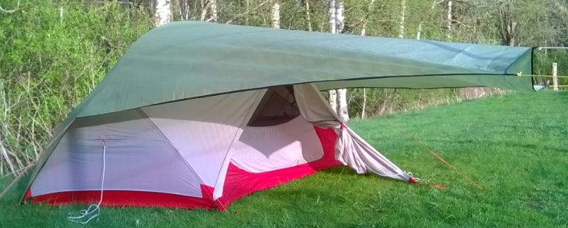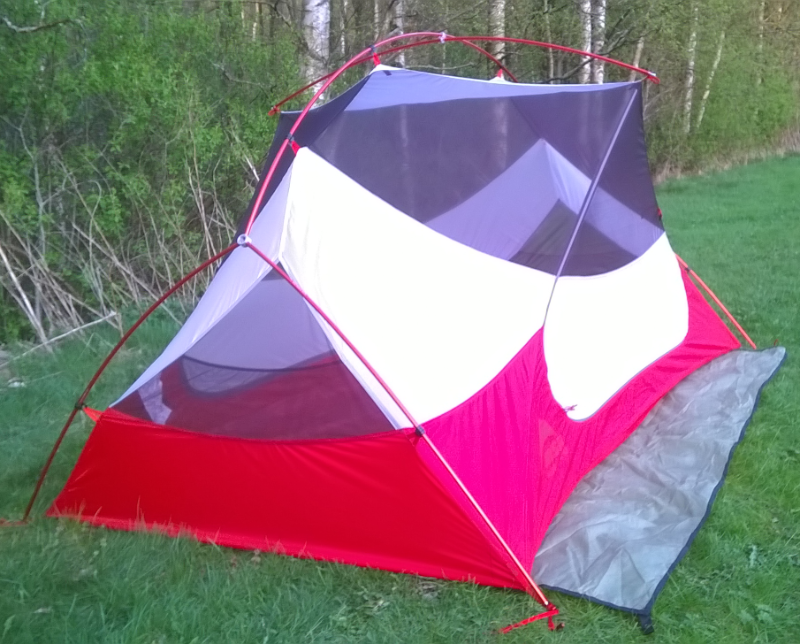 21. Kommer det att fungera med 2 band med öljetter mått c-c ca 1350 mm för att sätta upp Bågarna och yttertältet som finns ex på You Tub. sparat bilder kommer senare. Provat ett igår och verkar vara största nackdel med att ej kunna resa utan extra footprint som jag bedömer ej behövs då väv är 30 d.och verkar bra. Ingen reserv hylsa till bågar eller lagnings väv med vid köpet,man kan ju ev ta en bit av det stora locket på påsen. Jag har provat andra märken med liknande konstruktion och tex Jack wolfski spänner det otroligt i väven då man ska montera clipsen i bågarna,här fungerade det bra. Tar dock lite lång tid att resa tältet då mkt måste spännas men har tex helsport himalaya 2 extem som vinter tält och verkar smart att snabbt få upp båda dukar men stång kanaler så delar sig stängerna lätt vid urtagning på helt nytt tält och lite svårt att skjuta in de sista biten,och bågarna spänner rejält innan man får in dom i kopparna. Även provat HB Tarra med liknande problem som mitt HS. Kvalitet och mångsidighet gör att jag blev nöjd med än gång och ska man ej ha det på högfjäll mer än någon vecka så passar det betydligt bättre som ett universaltält,går ju att göra egna små bitar av väv eller stoppa i något av utrustningen i förvaringsfack som finns på kortsida på innertältet. Även provat ta ner ventilationsluckor inifrån,det fungerar om man har långa armar och att göra små justeringar av att spänna yttertältet går att komma åt inifrån. Vikt 1.7 kg 1.52kg utan stora och små påsar ca 1.5kg utan yttertält med tarp. -Nackdelar som ej går att fixa är att innertält blixtlås verkar vara i klenaste laget,samt att går ej få ner yttertält helt mot marken men provat att sätta upp absid mot vind och spetsen går att få ned helt och blev lite mindre drag i tältet på detta hållet samt borde tåla vind lite bättre på detta håll. -Låg VP 1200 på yttertältet men går ju bättra på med tiden vid nytt kommer det förhoppningsvis att fungera beror bl.på hantering då man ej ska ta mitt på vävar vid ihopläggning utan stroppar och längst ned på väven samt hur mkt det utsätts för UV strålning ,har silikon beläggning på utsidan men polyuretan på insidan för att kunna trycka märkeslogga och söm tätningsband ska fästa. + Bra hubbar bra spänd kord inb ok bågar bra pinnar verkar klena men dessa böjer du ej av och bra färg på dessa +Luftigt men ändå går bottenväv upp långt på långsidor acceptabelt på kort sidor väv i taket och vid alla snäppfästen till bågarna. +Bra med dubbla absider om 2p om ensam plats för kök vid oväder i ena och packning i andra. +Bra dörrar då man kan öppna från innertältet och tex kolla vädret och ej behöver sträcka sig ända till absid spets. +Bra kvalitet på sömnad och vävar och bra avstånd mellan ytter och innertält
