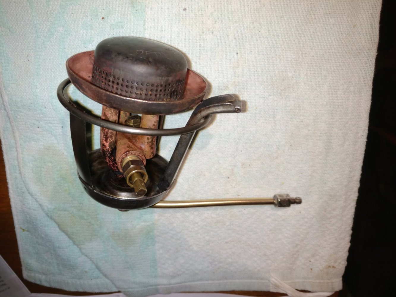 Tyvärr var det nästan stopp i det lilla röret i botten av brännaren ut till slangkopplingen och utan tryckluft(garaget 12 km bort) tog jag en eker till cykel och spetsade den lika ett borr och vred runt och skakade ur sv sot eller jord som kommit en bit in och syntes ej utifrån samt lite torkade vita fotogen flagor. Hade det varit helt stopp hade det varit lättare att hitta felet nu lite genomströmning. Får göra ett skydd för smuts till anslutningen ev "gladpack" så länge. Nu får jag testa det så fort jag hinner. Provade även med Cola (dricker ej denna sedan jag betalar tandläkaren själv)och blev förvånad av hur snabbt det blev rent jfr med citron rengöring med diskm.som tid här rekommenderat har sådan bra effekt att jag varar lite för bruk i ca 12h och att prova med halva tiden på mer känsliga och "moderna" brännare av "bond" stål och ej gjutna från förr som var avsedda att hålla i generationer.Kan nog ta bort deras ytbehandling på delar som sitter i hop med brännaren och får tas isär och bara det som måste ha kraftig rengöring och ta resten i citron som markstöd.