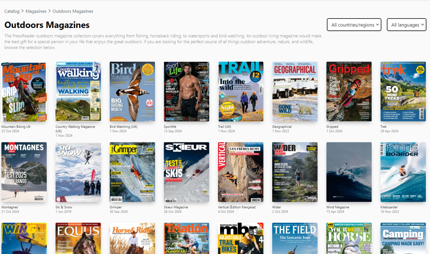 Når vi er inne på biblioteker, du får mest trolig tilgang til en drøss med aviser og magasiner (via Pressreader) også igjennom biblioteket ditt. Her et eksempel på magasiner, i kaegorien "utendørs": Beklager om det ble OT.