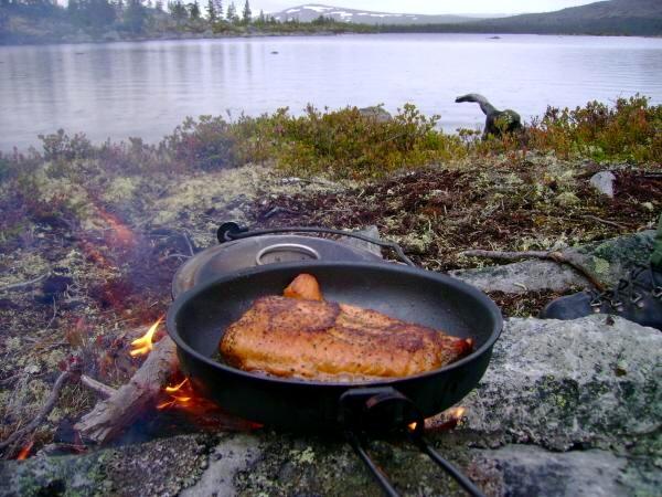 Jeg har en panne fra Eagle Products, den er nok snart 10 år gammel, så jeg er usikker på om de lager den samme fortsatt. Den har langt skaft som det er mulig å forlenge med en kvist, ikke så ulik den @Bjarne H.S. har. Har ikke ødelagt teflonbelegget enda Forresten om noen lurer kan jeg fortelle at det er halestykket på en 3.1 kilos ørret som godgjør seg i panna- 12 svar