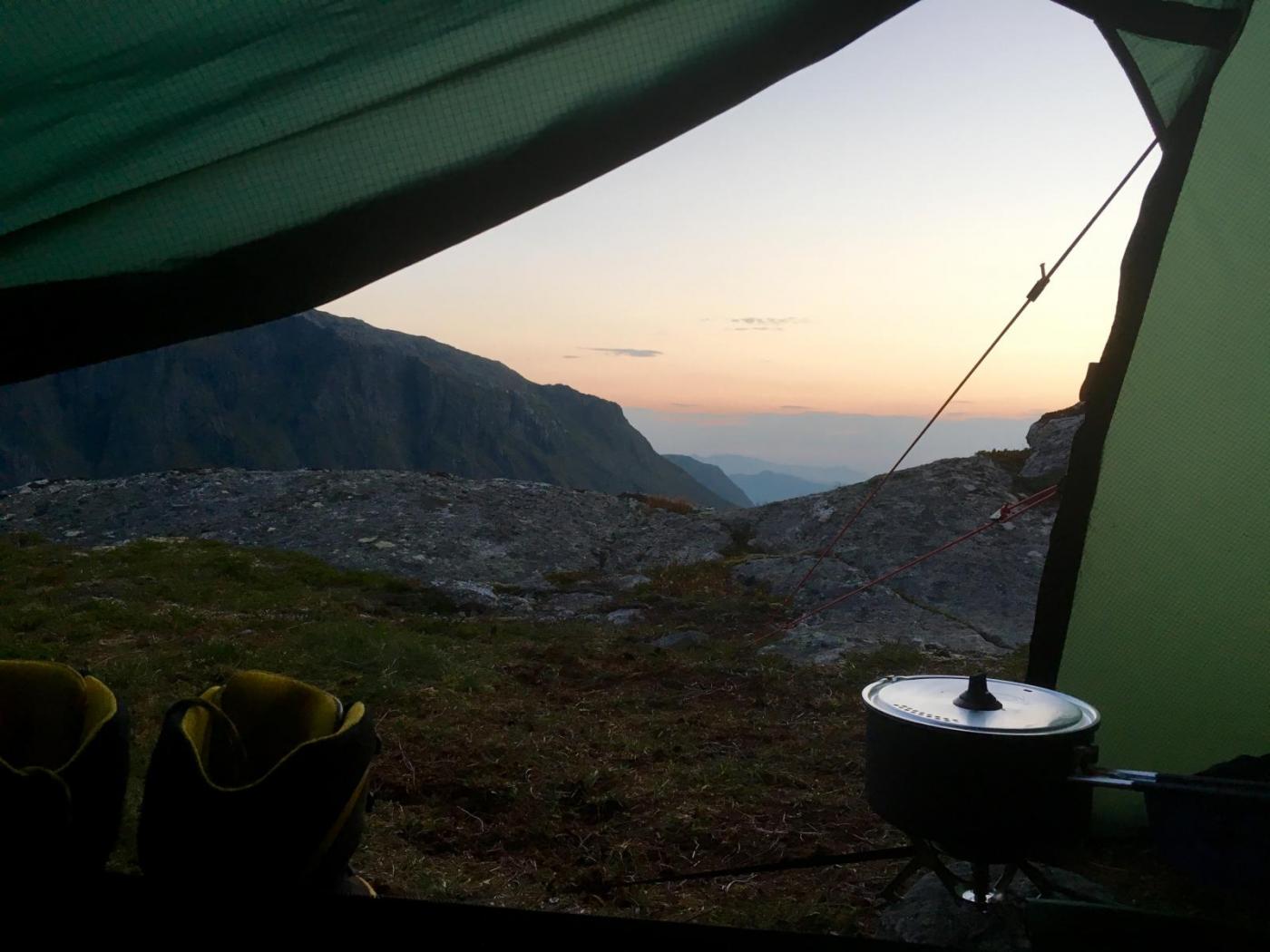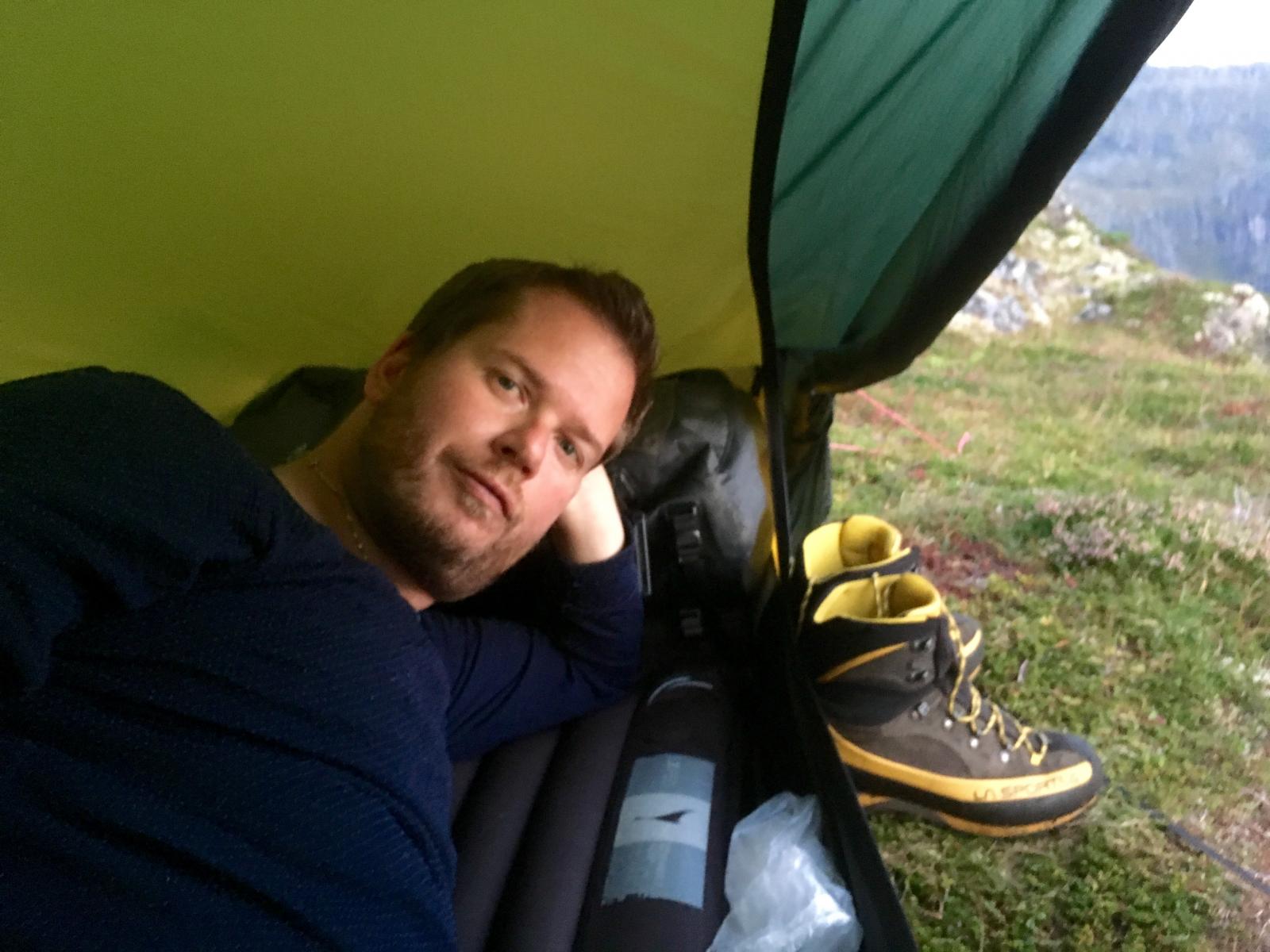Hodeenden mot vinden, da tåler teltet overaskende mye. Mot fotenden er det dårligere.