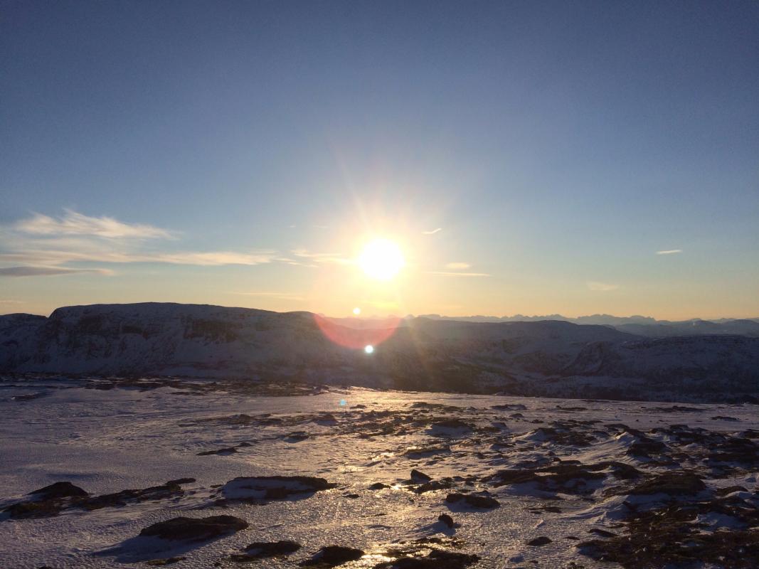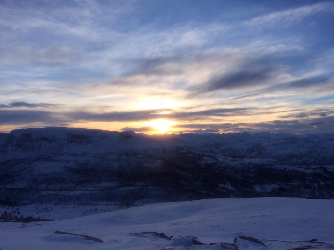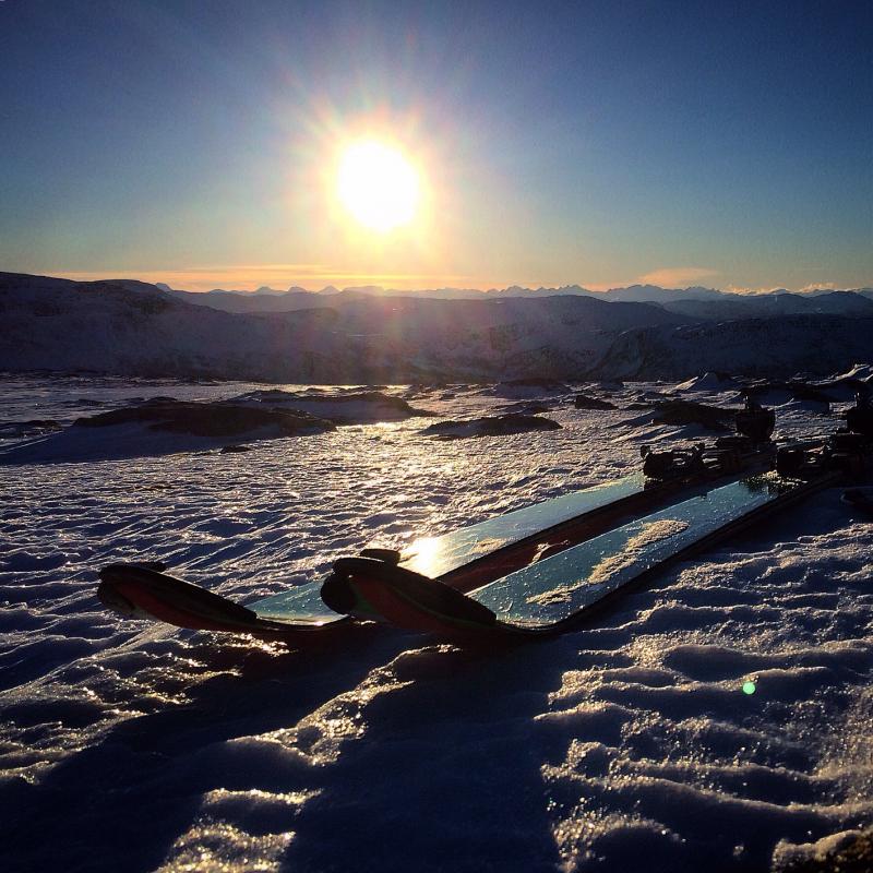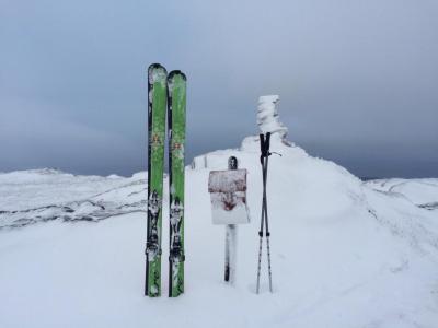 Rakk en kjapp tur på randonnee-skiene mellom jobbøktene i dag også. Sol og vindstille på toppen, men kaldt. Herlig tur