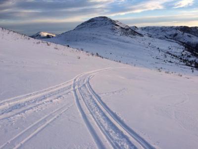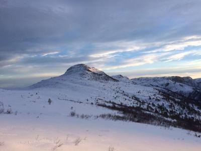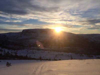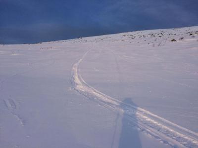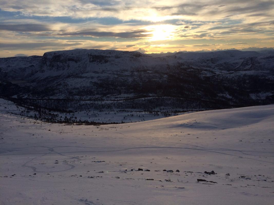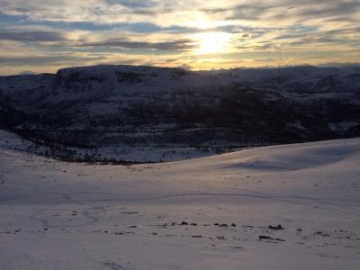 Ble en tur på randonnee-skiene i dag også. Pent vær, men kald vind. Bare så synd en idiot med snøskuter ødela idyllen. Hadde han bare kjørt til hytta si, men å herje i fjellsidene med skuter er ikke greit....