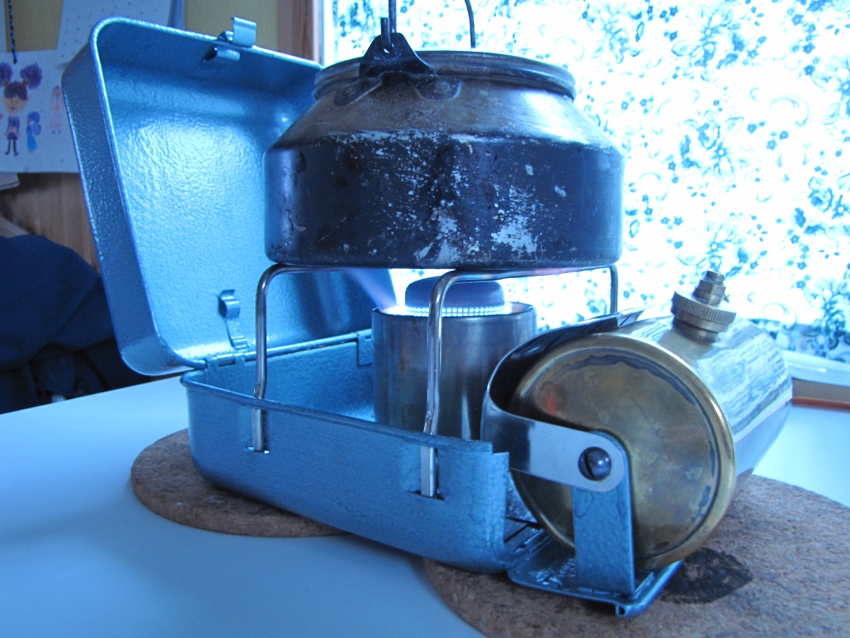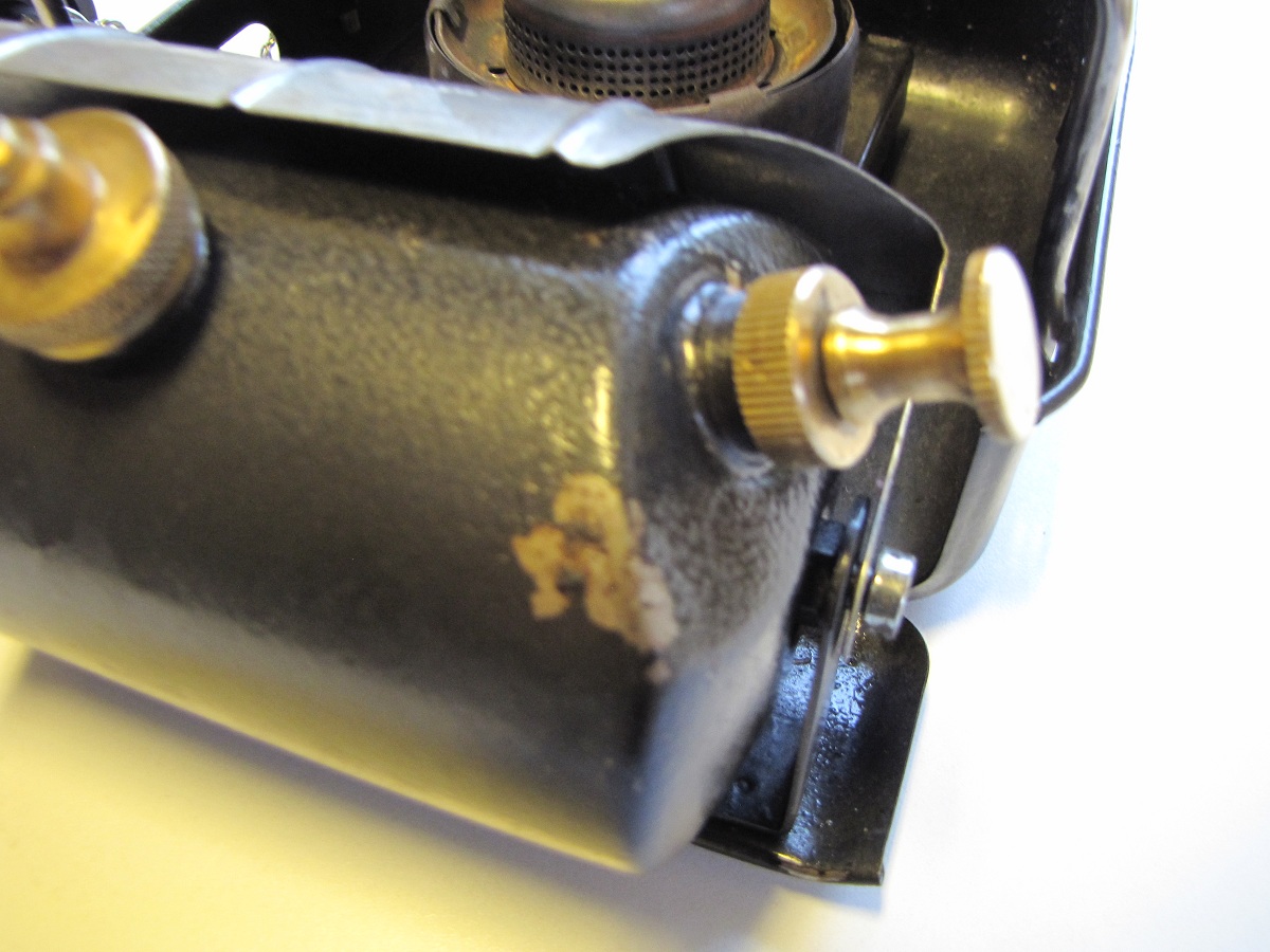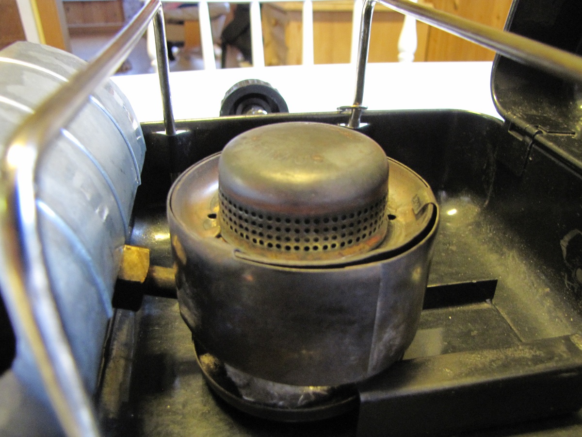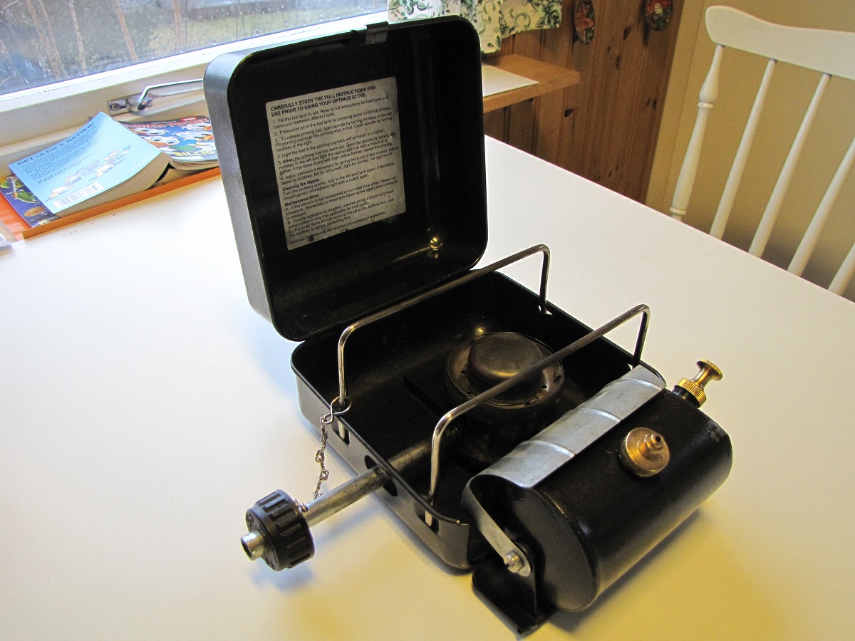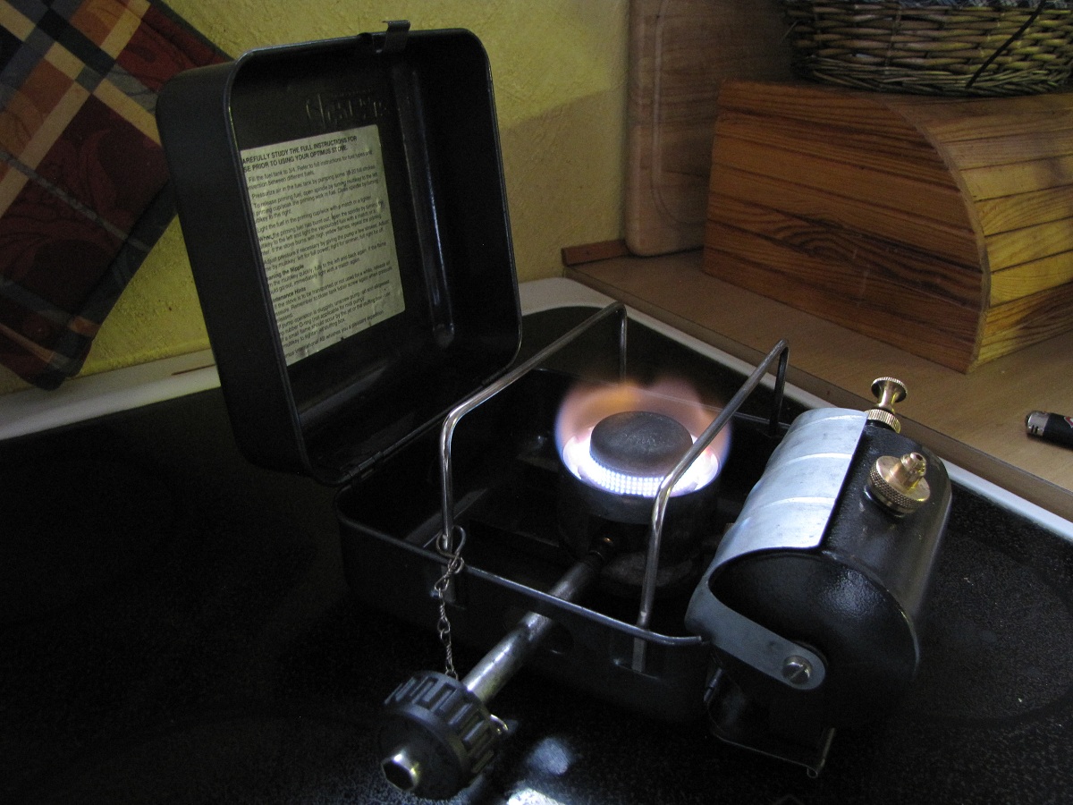 16. En Optimus 111C kom i posten i dag Den er brukt og har noen lakkskader. Etter å ha fikset returventilen med CRC, fylte jeg tanken med 4-takts miljøbensin og fyrte den opp. Den brant med litt gult, min 111T brenner reinere. Vil det lønne seg og bytte dyse til en for bensin? Det er M-dysa som står i nå, G-dysa er vel for bensin? Tanken ble også varmere enn mine andre 111, men det er kanskje vanlig? Jeg skal vaske brenneren og løse deler i primusvaskevannet til Runegutt og flekke over kassen med svart hammerslagslakk og pensel, så får vi se om den blir litt penere Legger ut noen bilder av nyanskaffelsen
