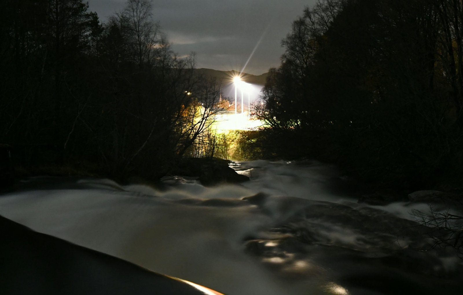 5. På kveldens joggetur rundt fikk jeg lyst til å prøve å ta bilde av elva med lysene fra stadion på Aure i bakgrunn. Etter å ha dratt hjem etter kamera bars det ut igjen og resultatet ble slik: 10 sek. f/5,6 20 mm ISO 5000