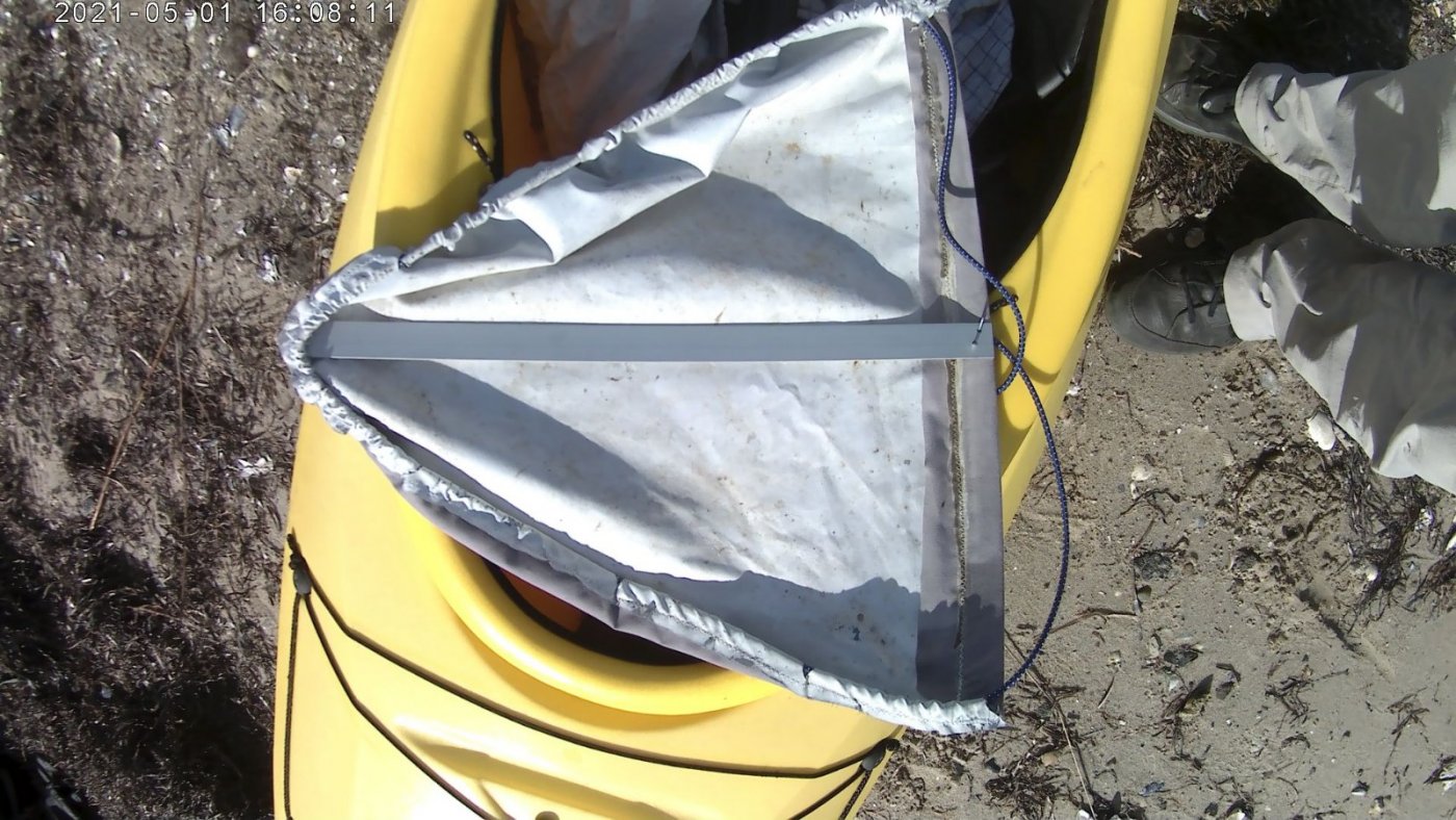 Hej knejter, Jeg har lige repareret på et lille spruttræk til min ordinære kajak ... og det virker godt. Jeg er lige kommet hjem efter et par timer i let vind og for første gang kommet hjem med en kajak HELT tør indeni ;o). Det er ikke så meget spruttrekket jeg vil vise, men mere om 'princippet' med aluminium-profilerne kan være nyttig på packraften? Oprindeligt var spruttrekket på billedet uden de buede profiler, men de gør en mærkbar forskel. Stoffet fastholdes af en gummi-snor i en syet løbegang. Profilerne hviler på cockpit-karmen. Kunne man forestille sig en tilsvarende tvær-bue under packraftens spruttrek? for ikke at samle en pyt i skødet? Jeg håber at mit indput ikke er alt for off-topic -