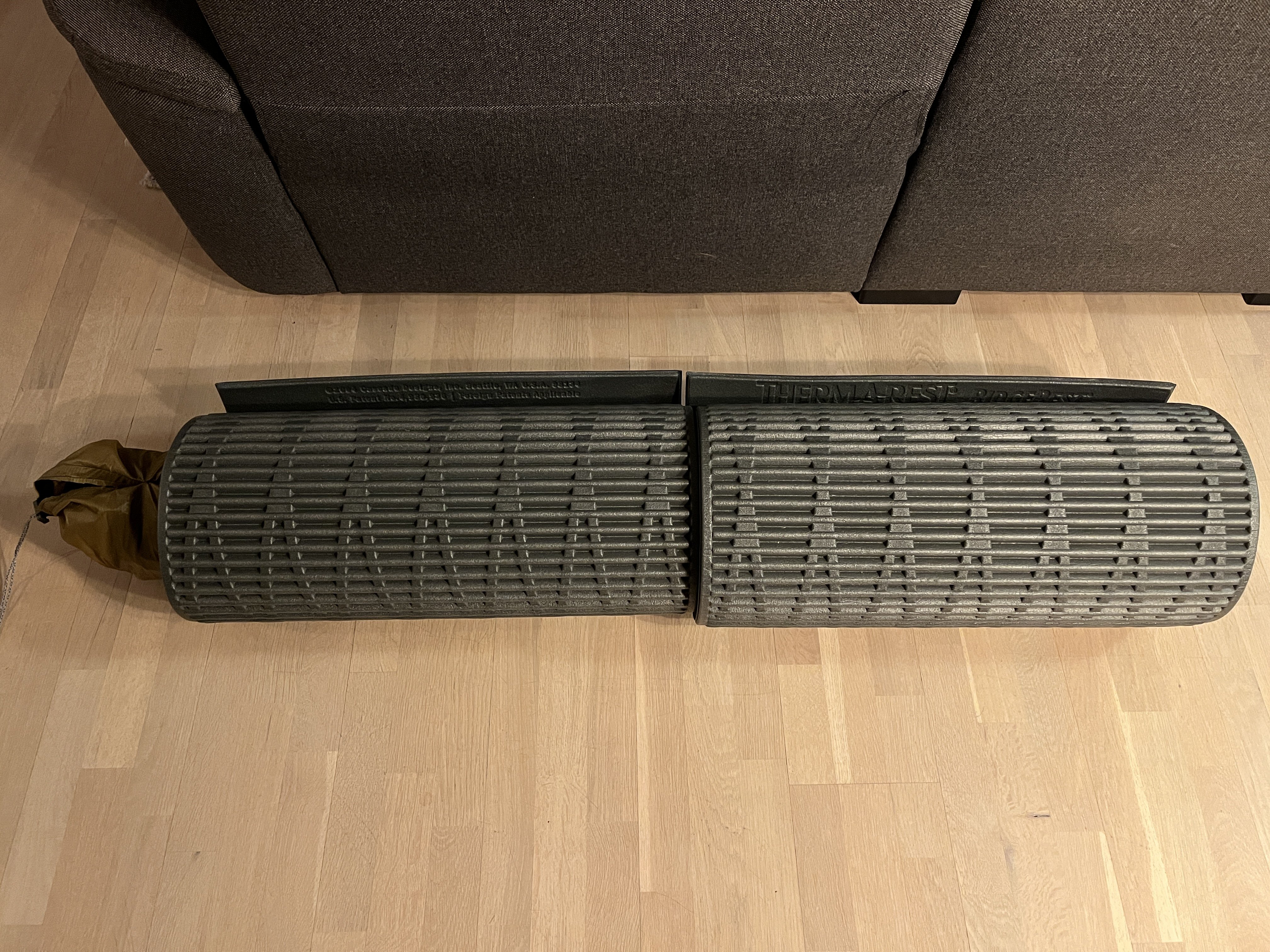 Faktisk ble det enklere å rulle sammen og pakke RidgeRest-mattene med teltgulvet i én vending, istedenfor å måtte rulle og legge hver matte i trekket for seg selv som jeg har gjort på turer så langt.