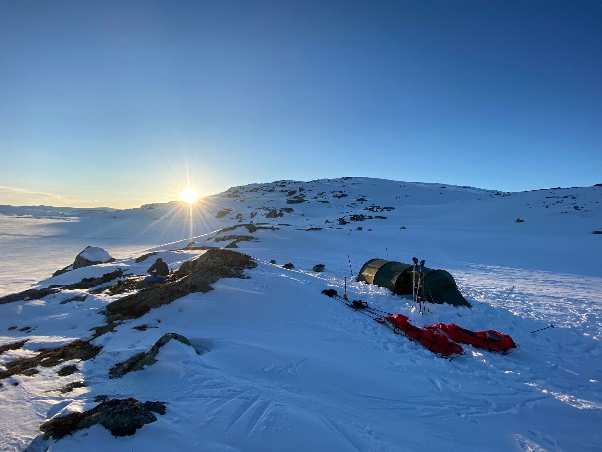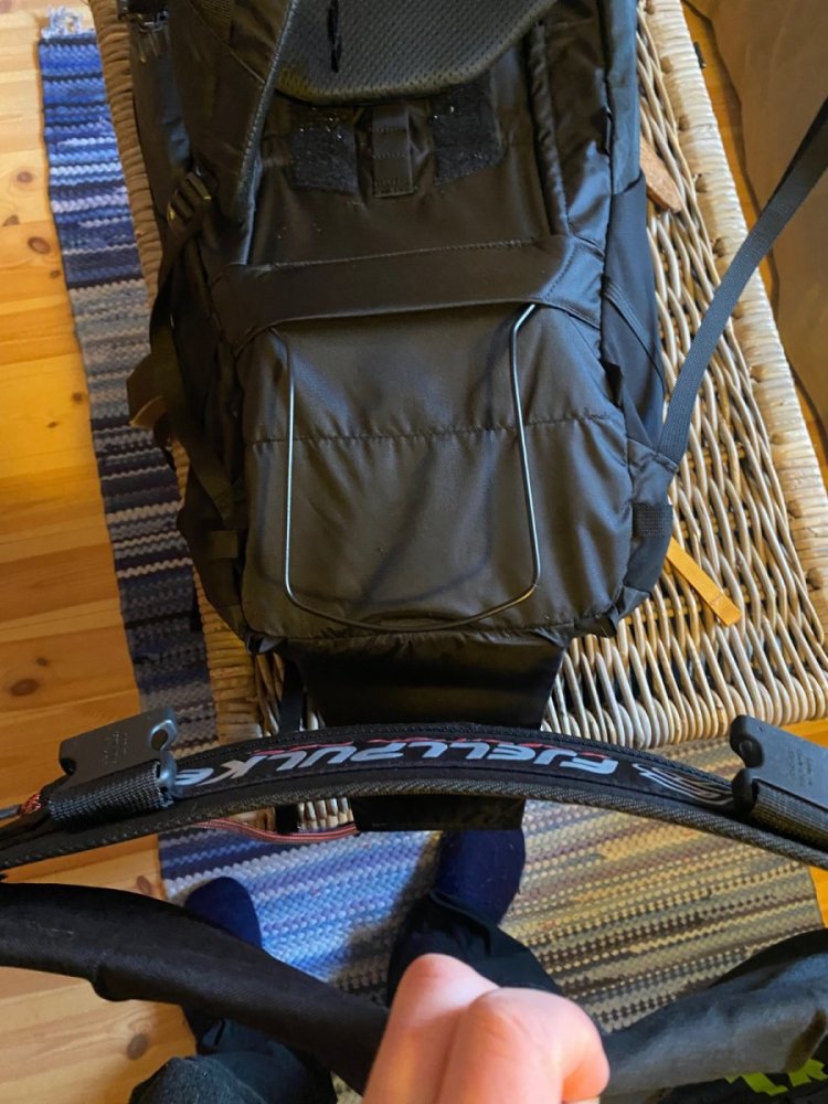 Har en stund vært på jakt etter en sekk for enkel turbruk på ca 50liter. Når jeg nå skulle ha med datteren min med pulk fra Finse i påsken ønsket jeg å øke volumet jeg kan frakte. Mest til enkle ting Som dunjakker, matpakker og litt extra. Bestemte meg derfor for å gå til innkjøp. Gå for en ren pulksekk var ikke noe alternativ siden jeg normalt sett har plass til det jeg bruker i pulk og bedding. Ble da obs på helium v55 mye grunnet den lave vekten, men også siden den reklameres med mulighet for feste av pulk. Etter å ha lest den tråden og undersøkt sekken nærmere konkluderte jeg med at det ikke var et alternativ å trekke med denne sekken. Siden hoftebeltet kan tas av og vekten jeg skulle bære var lav tenkte jeg likevel dette var en god sekk ovenpå trekkselen. Fikk en ide om å teste integrasjon med hoftebeltet til fjellpulken sin expedisjonssele. Trakk en fjellpulken expedition 154 med taudrag på litt over 50kg. Gikk kun 22km og 10km, men til denne bruken funket dette over all forventning.