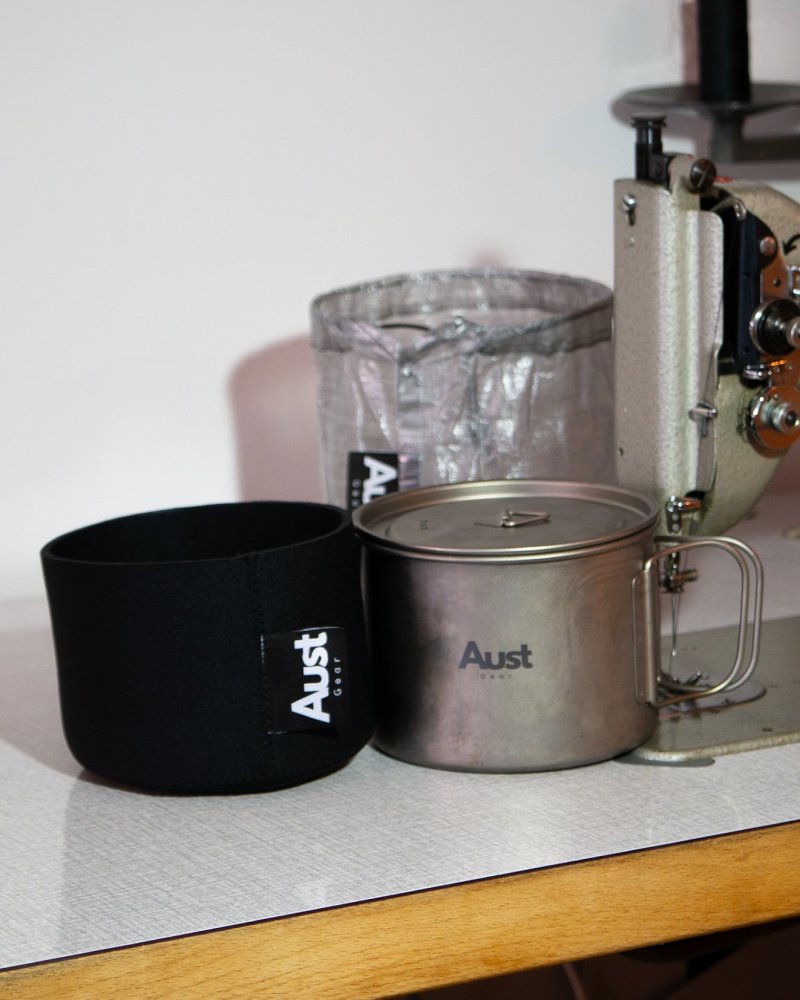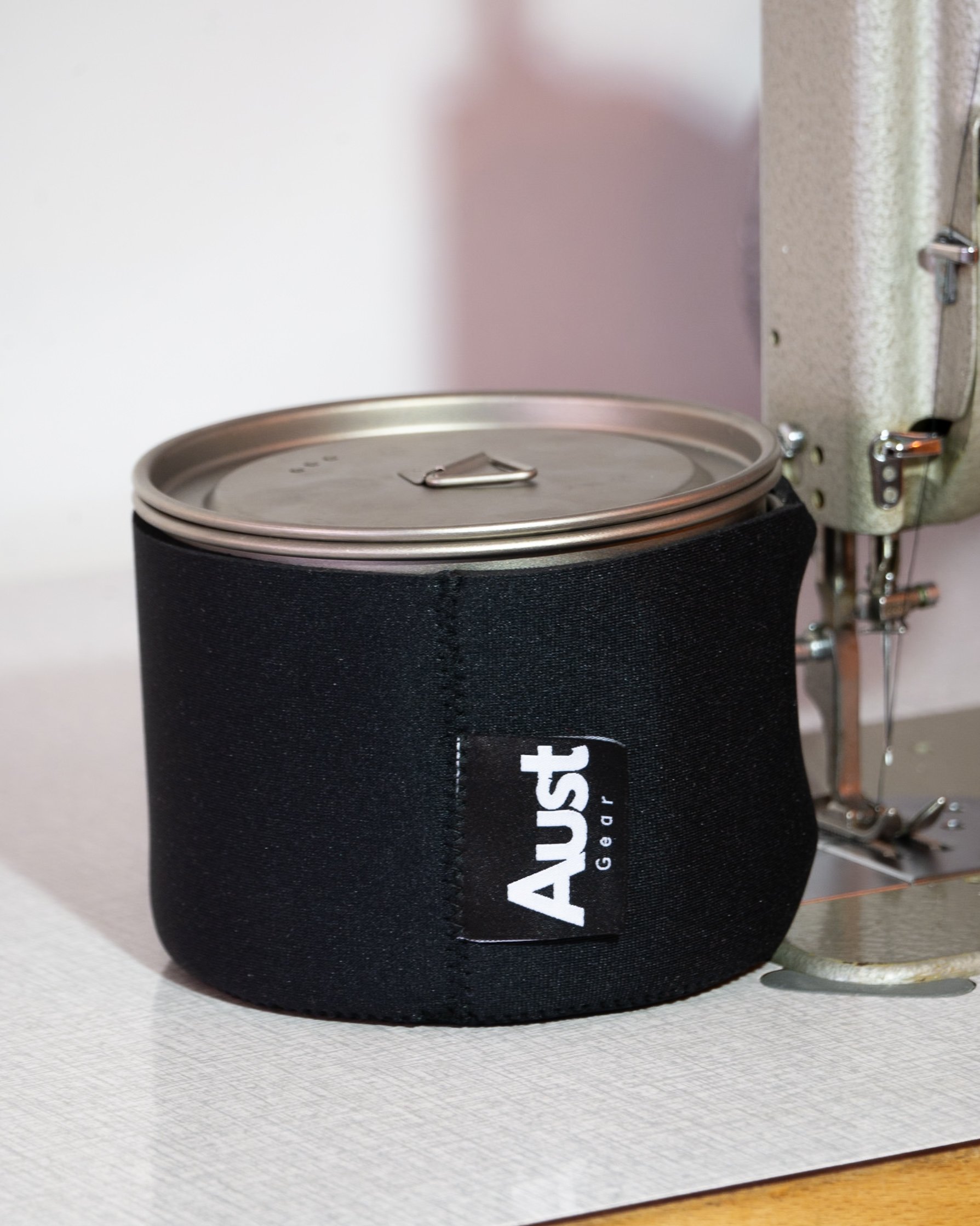 Det er gøy å lage sitt eget utstyr uansett om man er proff eller ikke høres ut som du har en skikkelig lekegrind i skredderverkstedet ditt - det misunner jeg! Har du sjekket ut Extremtextil for lette og tekniske stoffer? Prisene er ikke for ille om man samler opp materialene til større bestillinger. Det er en custom kjele Jeg vurderte å kjøpe inn titankjeler for videresalg og fikk tilsendt noen vareprøver. Akkurat som du sier ville jeg ha en kjele med litt bredere bunn, og litt større volum enn den typiske 750 mL-kjelen. Den er veldig lik MSR Titan Kettle 900mL.