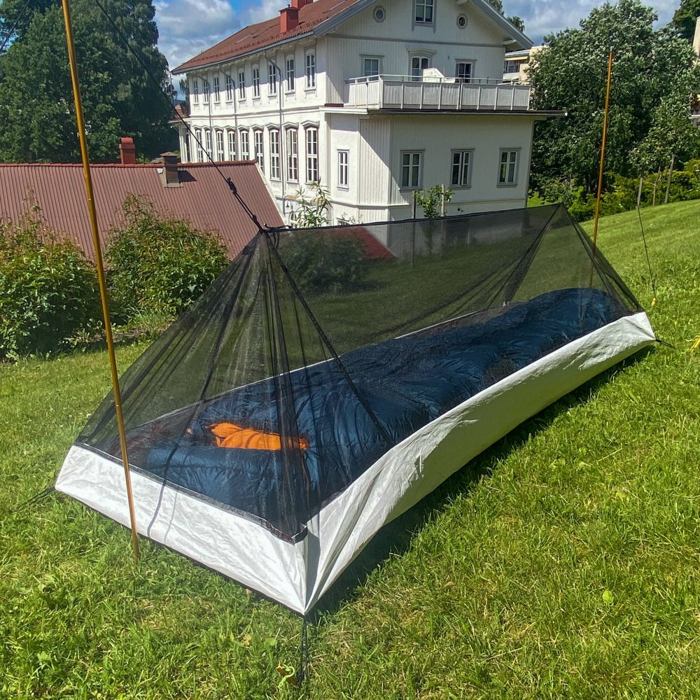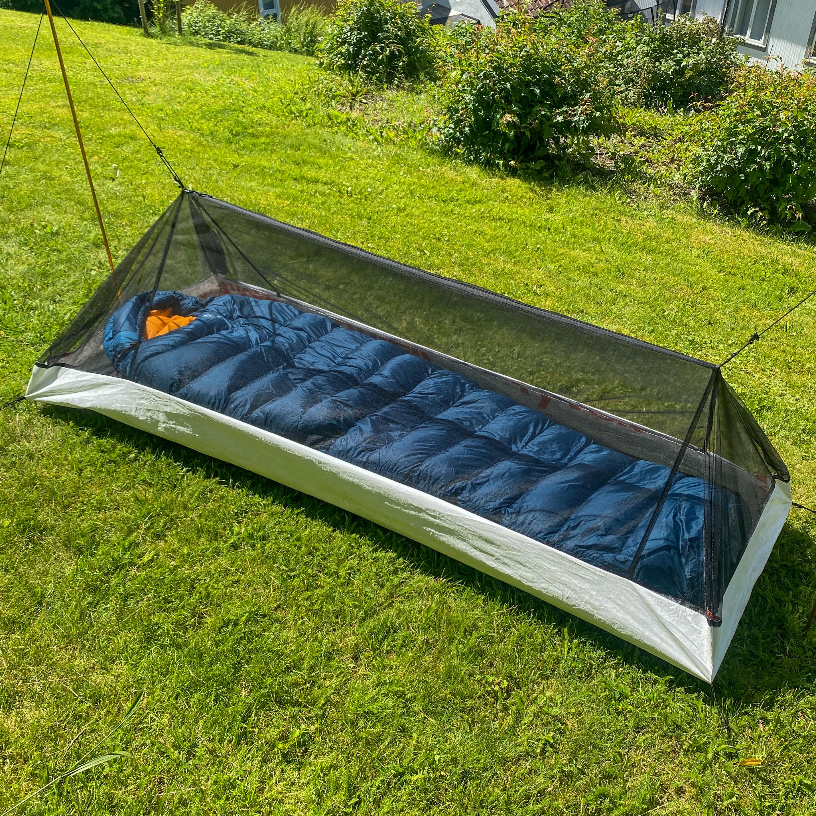 Hvis du er glad i tarp, men ennå ikke har testet en bivy bag, bør du seriøst vurdere å sy din egen. Den er lett, pakkbar gir følelsen av å ligge tettere på naturen. Og myggtett! Og med litt innsats kan du lage din egen Etter å laget flere ulike typer bivy bags har jeg landet på et design som både ivaretar komfort, pakkvolum og vekt. Siden jeg har begynt å selge disse via Aust Gear kan jeg ikke gi bort hele oppskriften, men jeg vil her dele nok til at de som har lyst kan få til noe liknende Jeg jobbet lenge med å skape et design som gir en funksjonell bivy bag, som ser bra ut og som er enkelt å sy. Jeg lot meg sterkt inspirere av Stitchback Gear sin tutorial. Den er tilgjengelig her: https://www.stitchbackgear.com/articles/easy-to-make-bug-bivy Det som er supert med denne oppskriften er at den gir et volum ved å lage en vertikal søm, uten å bruke flere paneler. Her er det kun en overside og underside, hvilket gjør det enkelt å få et godt resultat. En nøkkel for å få fine sømmer er å bruke en fransk søm (French seam) som gjemmer råkantene til stoffet. Jeg gidder ikke sy toppstikning i tillegg. Blant tingene jeg har gjort annerledes fra Stitchback sitt design er å lage en langsgående glidelås som gjør det mye lettere å komme seg inn og ut. I tillegg har jeg gjort bivy bagen bredere og lagt til små bardunfester i hjørnene og på oversiden for å holde stoffet vekk fra ansiktet. Av materialer ville jeg gått for en bunnduk av silnylon på 20-40D, men Tyvek som jeg har brukt bør også fungere fint. Overdelen bør være pustende, og her er en kombinasjon av 20D ripstop nylon og myggnett supert. Kun myggnett er luftigere og supert på varme dager. 2 mm strikk er fint til «barduner». Nål: Microtex 80. Tråd: Gutermann Mara 100/Sew-all.