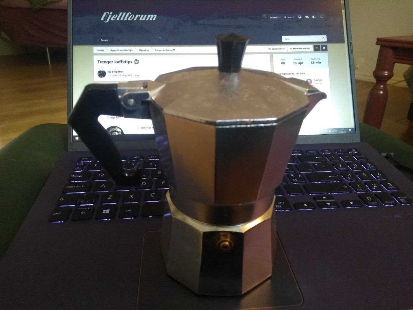 Denne kjøpte jeg for 40 kr,- i Polen. Billig og enkel moka pot. Dette er "luksuskaffen" på tur. Fordi den tar litt plass i sekken. Alle andre espresso-varianter beregnet for tur syns jeg har så mange løse deler, som skal skrus sammen her og der - ofte i plast. For en vims som meg er det veldig greit med noe som ikke har mer enn tre deler. Slik kaffe gir meg det "kicket" jeg er ute etter. Noe jeg ikke føler man får av filterkaffe, med mindre man drikker en halv liter. Men siden kaffen ofte inntas før fast føde, blir det skvulp og ubehag i imagen. Derimot setter det fart på fordøyelsen - som er veldig greit, for da kan jeg planlegge den biten også. 😂 På langtur blir det kjip og sur frysetørka kaffe fra en snyltekopp. Jeg burde nok funnet en bedre løsning. Men jeg tenker at av og til er det greit å drikke noe av lav kvalitet. Da setter du i det minste pris på skikkelig kaffe når den tid kommer.