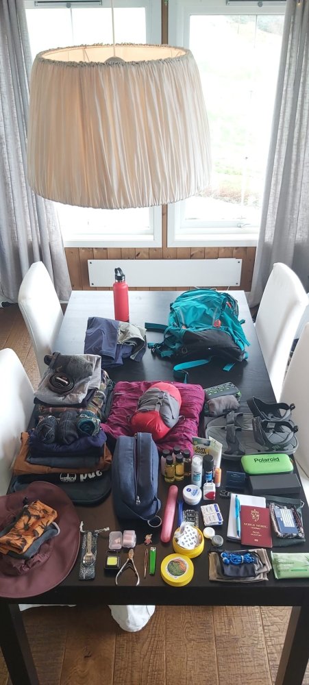 Overraskende mange og fine svar. Takker og bukker. @aico Jeg har ullplagg som er så gode at jeg ikke klarer meg uten, og jeg har hatt ullplagg som har vært helt for j* - at jeg har brukt dem i under en time på tur, da de er statiske, klør og det som verre er. Så litt magi må det nok være. Hovedårsaken til at jeg foreslår ull, er fordi de fungerer bra mot lukt. @Peacemaker artig at du lenket til den t-skjorta fra Magasinet/Dovre. Jeg har snust litt på den. Bare synd de ikke hadde min størrelse, og i litt lysere farger. Jeg har hatt litt dårlige erfaringer med "billigmerker" tidligere, men du sier altså at Dovrefjell er like bra som alt annet... Interessant. Takk. @graham den flaska der har jeg brukt før.... hehe. Men det er så mange pilgrimer som overpakker, at de legger fra seg det ene og det andre i løpet av turen. Så det er alltid stæsj å få gratis, slik som store 500 ml flasker sjampo (som også fungerer fett til klesvask ;p). På de fleste vandrehjem er det en stor eske med "FREE", der finner man alt fra tykke ullsokker, bøker, klær og kosmetikk. @Gabs88 Paraply blir det nok ikke. Hehe. Jeg er veldig fornøyd med en Bora Bora Booney Light Raisin Bucket fra Columbia. Faktisk mistet jeg min gamle på en tur i Armenia, Colombia i fjor sommer. Vi fikk en motorsyklist uten bremser rett i fronten på bilen vår, og jeg hoppet ut for å hjelpe, og i all forfjamsing mistet jeg den flotte hatten..... som nå sannsynligvis noen kaffebønder nå bruker i plantasjen sin. Så jeg måtte kjøpe meg en ny fjong hatt. ;P @ost Vel, jeg er ikke på Facebook. Et annet "problem" er at de internasjonale sidene ofte henviser til Amazon og lignende. Her i Norge har vi så mange flotte egne merker, at jeg tenkte det var bedre å høre her inne. Men tanken er god. Hva som befinner seg på fjesboka aner jeg lite om. Takk for gode svar. Dovrefjell altså.... hmmmm.