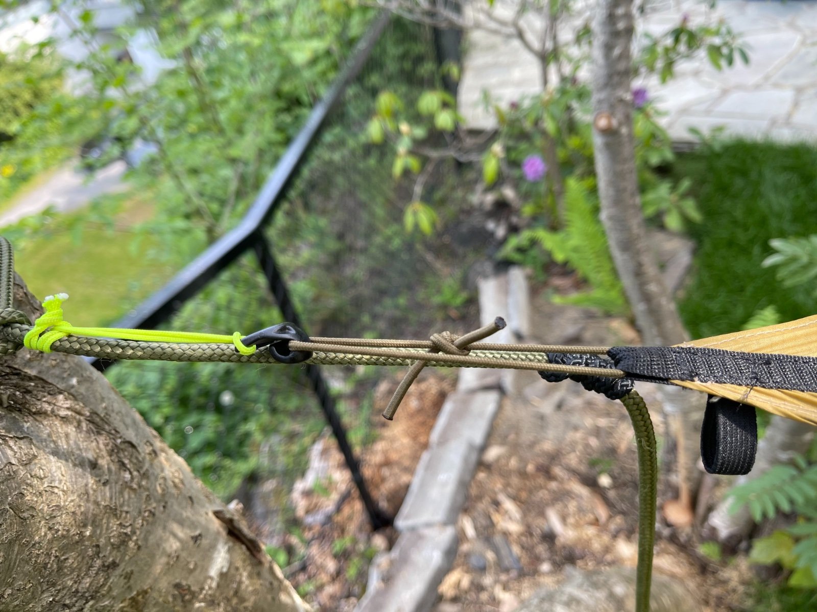 Bruker selv en 1,5-2mm tau og plastkrok som jeg fester i en strikkløkke. Denne løsningen kommer på tarpen vår, og fungerer supert. Da får du bra spenn i tarpen, og strikken avlaster godt i vindkast og hvis tarpen siger litt. Tenkte å legge opp løse komponenter i nettbutikken, så man kan kjøpe delene løst. -