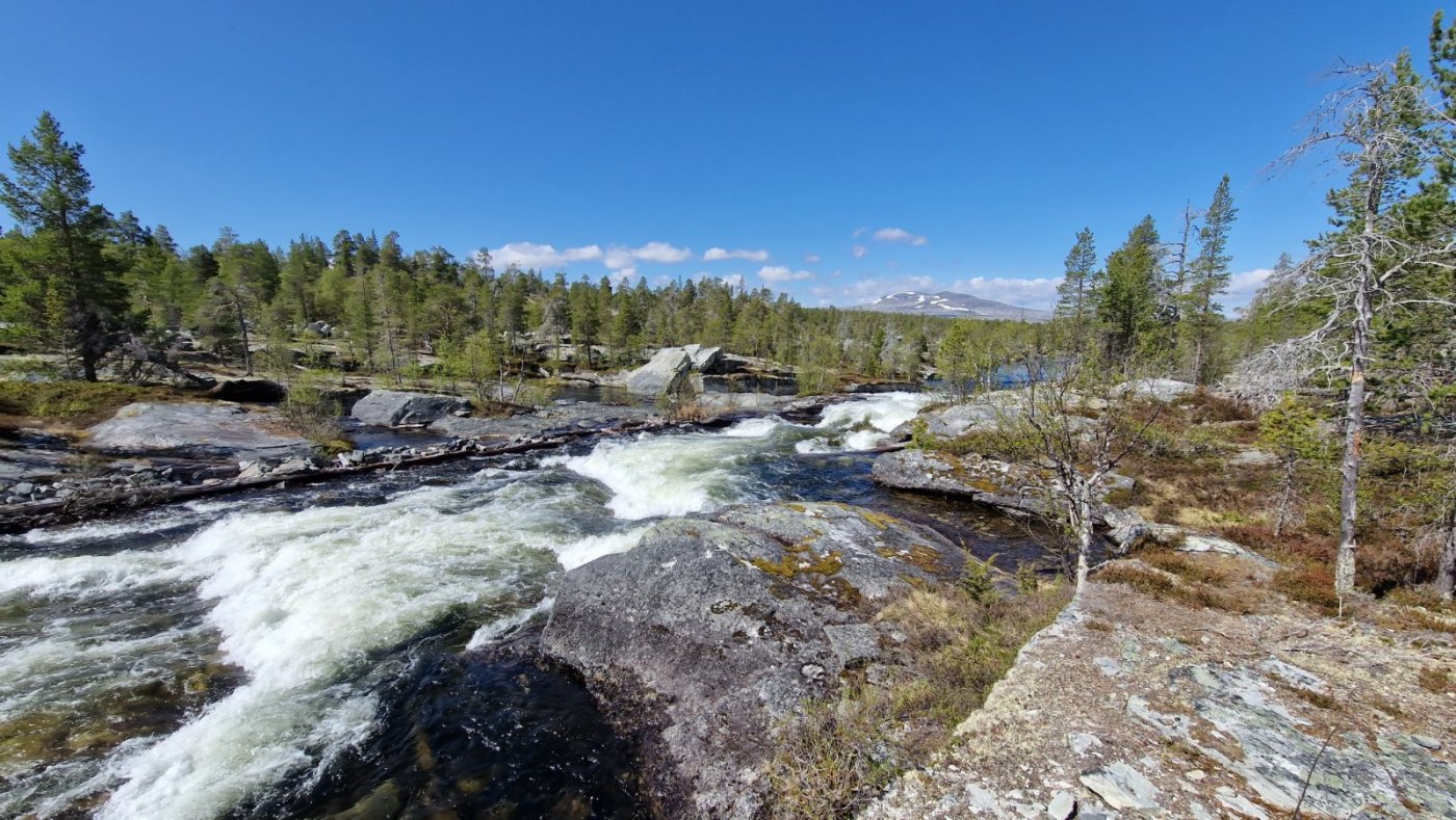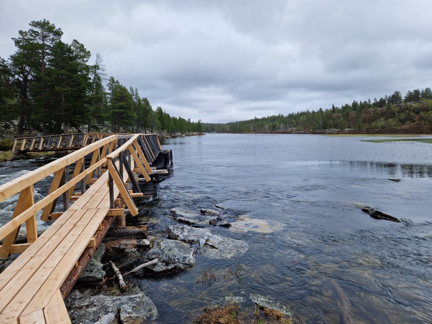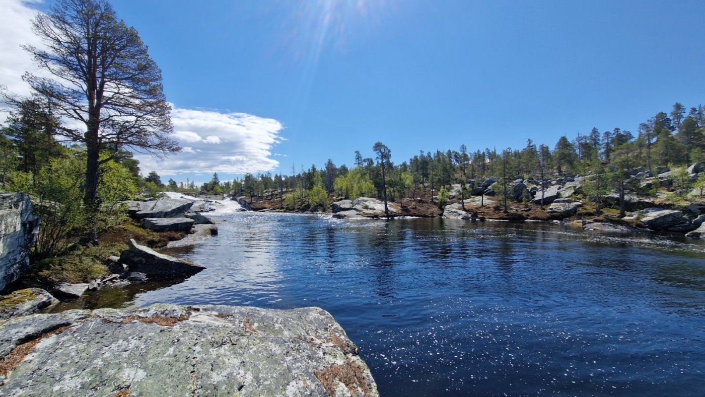 Sommeren 2021 fikk jeg meg en firedagers fottur alene i Femundsmarka i starten på juni. Dette fristet til gjentagelse, og med packraft i sekken dro jeg 3. juni (2022) til Engerdaln. Hadde riktignok tenkt meg opp helga før, men det meldte været var lite tiltalende så jeg ventet en uke. Turen var jo planlagt ei stund, slik ca 5-6 måneder i forveien... Planen var å gå opp forbi Røvollen - Midtrøsttjønna - Revsjøen -Reva - Rogen - Røavassdraget - Roasten - Røvollen på fire dager, alene. Kjell Magne på Jonasvollen kjørte meg over til Røoset og derfra ruslet jeg oppover langs Røa til Røvollen. Der ble det en liten rast sammen med et par andre karer som var ute i samme ærend. Videre fra Røvollen fulgte jeg DNT-stien til Midtrøsttjønna og over de. Det å komme opp fra skogen og "ut på" vannet der er en opplevelse! Målet var riktignok å komme frem til Revsjøen den kvelden, så fisking ble det ikke noe av der. Før avreise hadde jeg jo søkt info om ruta, sett på kart og lest forum. Ned Røa er det mye info om, så beregning av tid her var ganske greit. Å gå fra Røvollen gjennom skogen til Revsjøen var det mindre erfaringer med. Dermed ble det litt stress på forflytning første dagene. Det er heller ikke så stort problem da, all den tid en er alene Det går så fort og lenge det går. Og apropos alene. Det å spise lunsj på Midtrøsttjønna alene, bare noen timer etter at en forlot siviliasjonen er herlig. Da er det endelig stille. En merker at en er på tur, lenge før en parkerer bilen... Fra brua over Røa ved Røoset. Bildet i fra da jeg kom ut av skogen og ble møtt av Midtrøsttjønna.