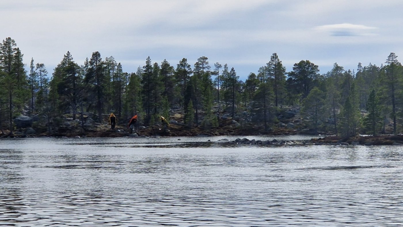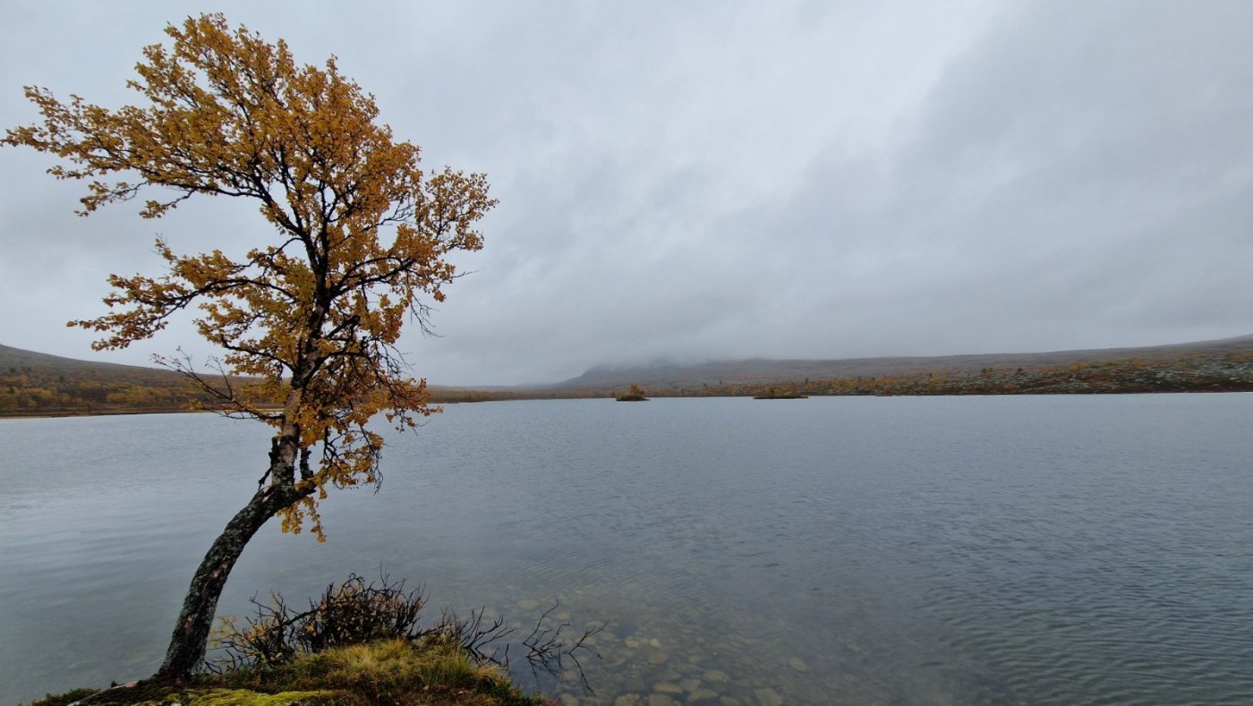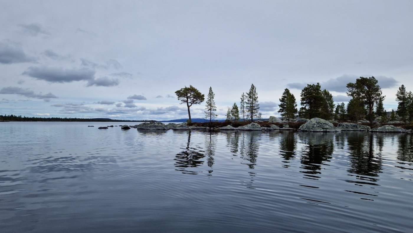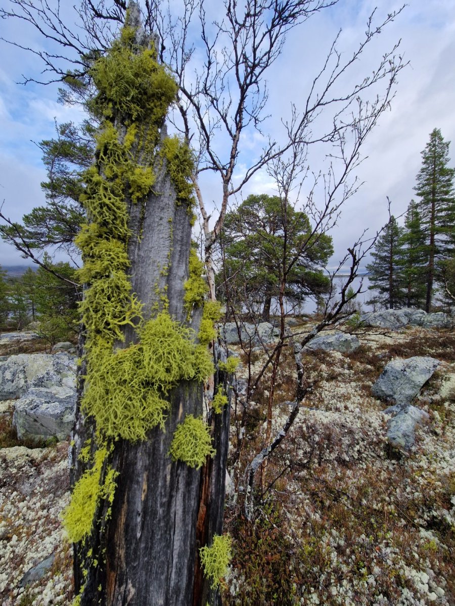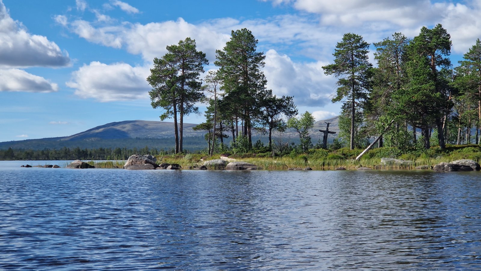 Morran etter ble ganske treg når været viste seg fra denne siden. Riktignok var det meldt litt nordavind utover dagen, så jeg valgte å ikke padle nordover men heller krysse før det begynte. Da ble det også tid til fisking midtfjords og rett og slett bare ligge å duppe litt på vannet. Padlet sørover og inn i Balvika der jeg gikk i land på ei sandstrand. Tuslet gjennom skogen og opp på Bjørnåberget. Der var utsikten fortreffelig og kaffen smakte ekstra godt på toppen. I sommer var det rimelig tørt, noe som merktes. Til og med gjennom myrene ble det knapt fuktmerker på skoa... Rart det går så bra som det gjør. Vel nede igjen på vannet hadde vinden tatt tak og det ble en strabasiøs ferd over vannet igjen. Heldigvis var det noen flere på vannet den dagen. Vel tilbake på vestsiden tok jeg meg en tidlig middag på nok en idyllisk sandstrand. Der ble det også tid til litt fisking, dog resultatløst. God og mett padlet jeg videre tilbake inn "tarmen" som går helt inn igjen til Kopparleden. den var også ganske morsom. Så var det bare den kjedelig delen med å pakke alt inn igjen i bilen og vende snuta hjem. Jeg skulle gjerne ha gjort dette til en mye lenger tur enn to dager, men bare det å få det her er en helt fantastisk opplevelse! Dette er tilgjengelig og gir skikkelig valuta for penga (tiden)! Det ligger ei ensom stor furu i terrenget.- 1 svar