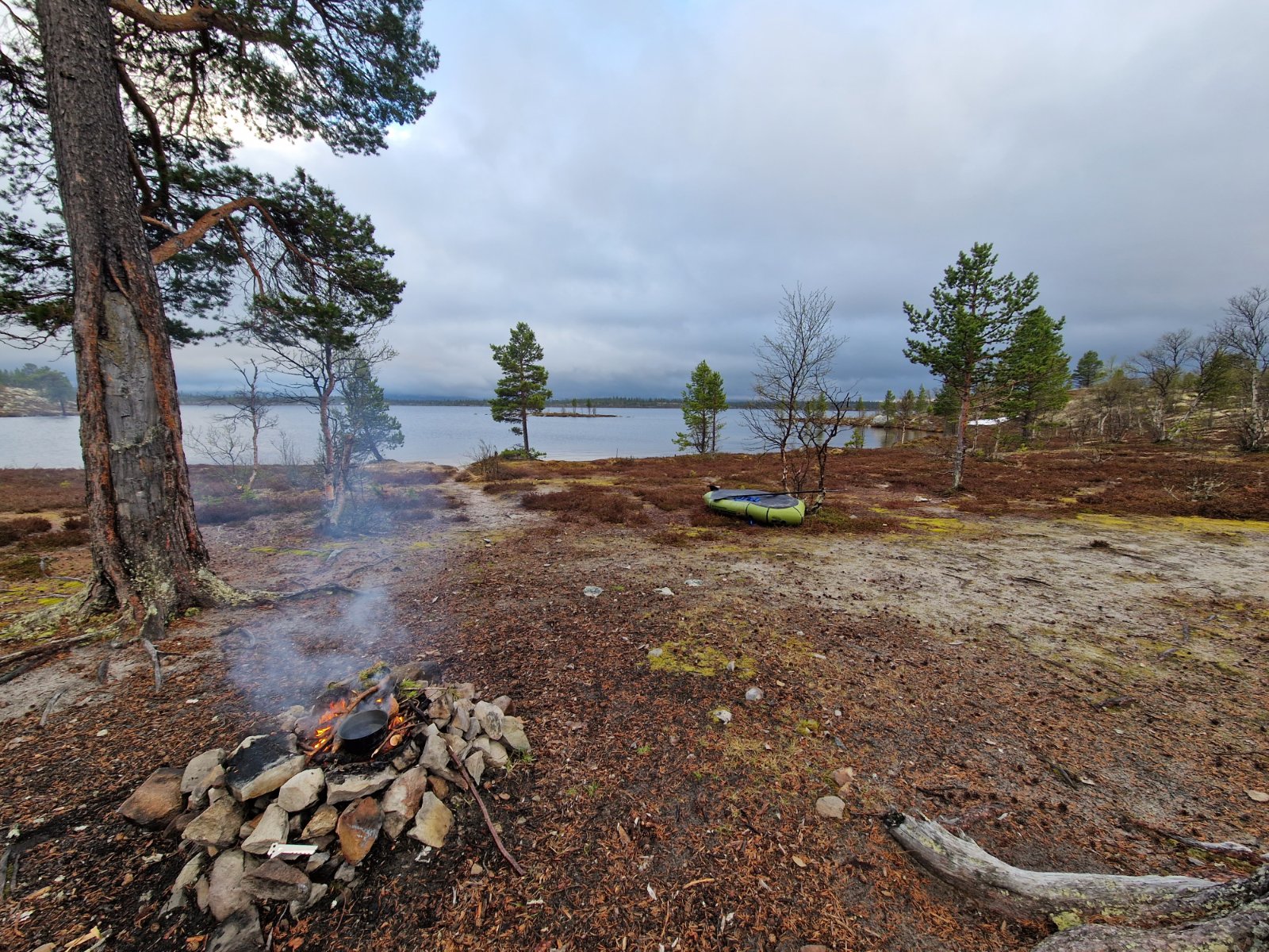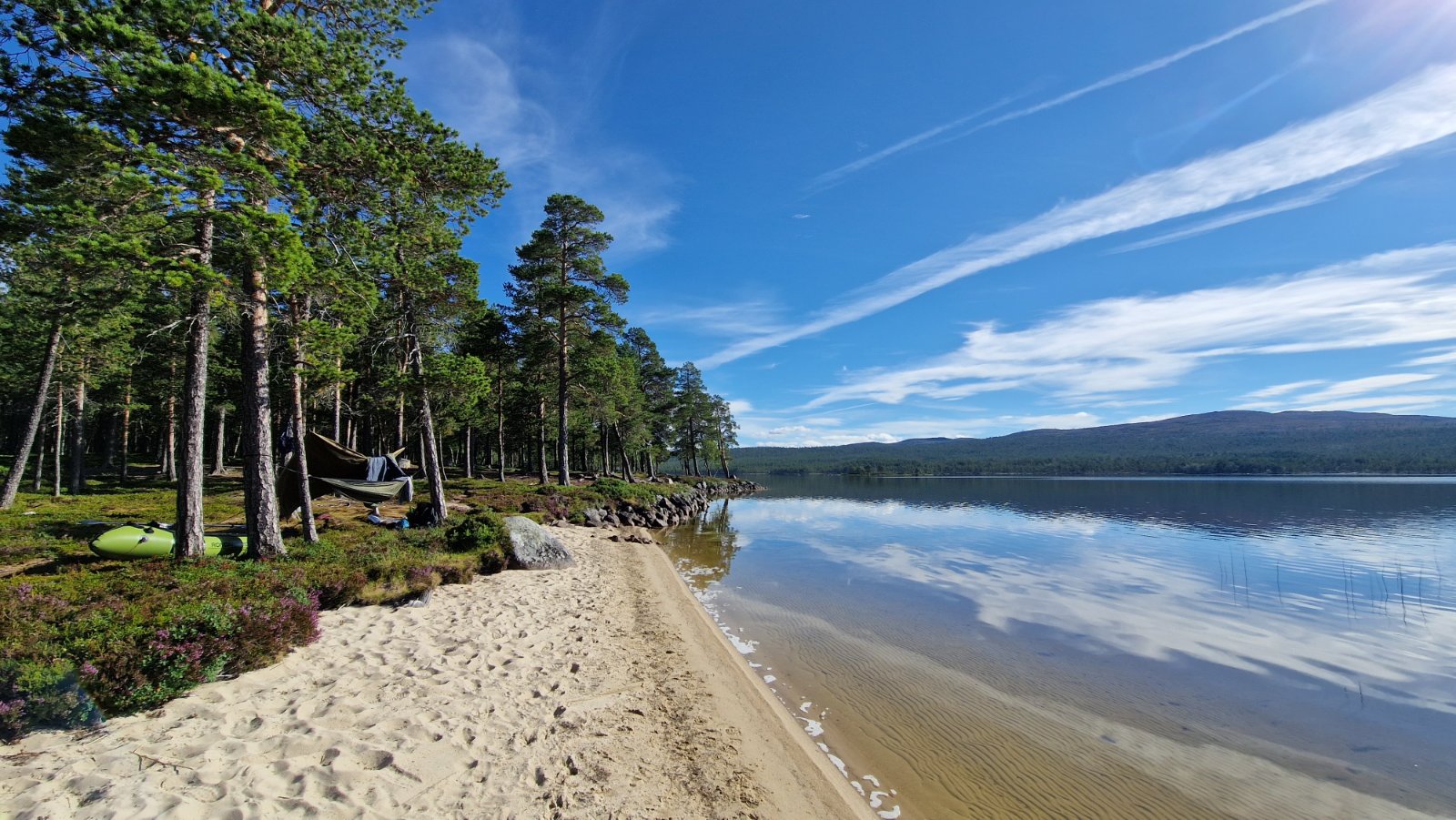 Hadde sommeren 21 en tur på Isteren med kano og motor og kjørte rundt søndre delen av vannet - som ikke er vernet. Kastet meg derfor i veien i sommer med packraften for å se iltt mer av den vernede delen. 12. august 2022 var været godt og jeg parkerte langs Kopparleden der stien til Elvålsvollen går. Ruslet et par km ut til hyttene der jeg møtte en av grunneierne som slo av en hyggelig prat. Alltid moro å møte noen som vet litt mer om området en skal ut i! Vel nede på brygga så jeg ut over en blikkstille Isteren og iveren til å hoppe uti var stor. Og som alle advarsler om skiftende vær stemmer, tok det akkurat tiden det tar å blåse opp packraften med elektrisk pumpe, før det hadde blåst opp... Padlet i le av land og innover, men i det jeg rundet odden ble planen om å krysse vannet og padle nordover skrotet. Kliss alene og i et iskaldt vann der det ikke er motorbåter blir risikoviljen lav - og padleturen kort. Jeg loffet meg forsiktig nordover og la meg til på vestsiden på ei nydelig sandstrand. Et lite kvistbål og middag smakte likevel og selvfølgelig fortreffelig! Normalt er jeg mest glad i telt, men denne gangen var værmeldinga trygg og jeg skulle bare ha en overnatting. Dermed var hengekøye et fint alternativ. Bilder fra padlinga første kvelden ble det ikke, men morran etter våknet jeg til vindstille og flere-og-tjue-grader. For en plass! Bildene sier sitt.