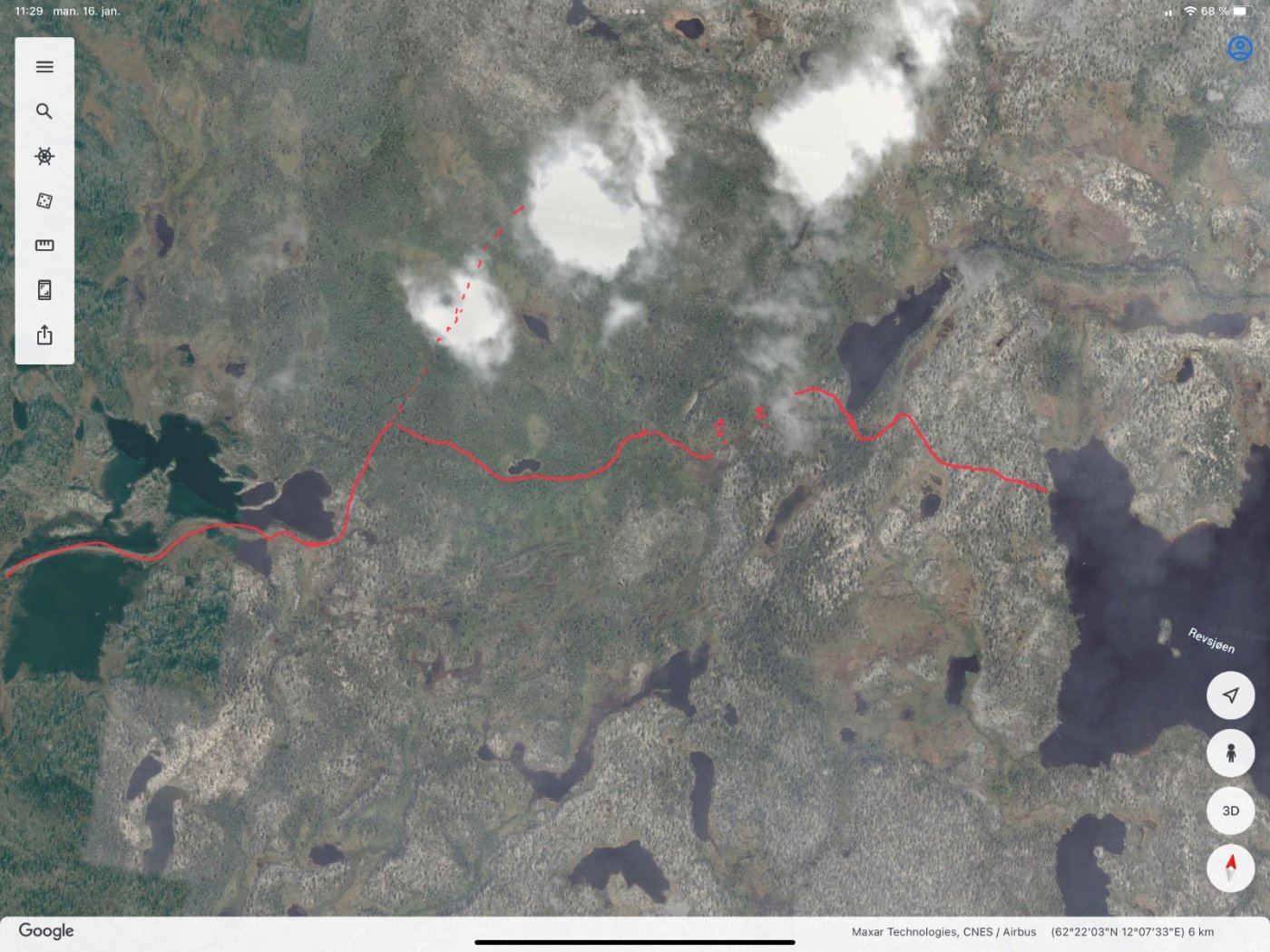 Ja denne fant jeg ikke så mye info om før avreise jeg heller. Brukte Goolge earth for å lage meg ei rute. Valgte å gå dnt-stien opp et lite stykke fra Midtrøstjønna før jeg brøt av og gikk mot den lille vannpytten - for på østsiden av denne er den en myr som jeg fulgte kanten av og krysset nord for. Neste myr krysset jeg også på nordsiden, og dermed var jeg lenger nord enn planlagt, men traff akkurat sørspissen på vannet der det var noe tråkk. Siste kvarteret/halvtimen mot Revsjøen gikk dermed litt lettere + at det var mer morene. Det er skog og myr i det området ja, så kart og kompass er en fordel. Med litt planlegging går det greit, men jeg brukte ca halvannen time fra enden av Midtrøstjønna til Revsjøen.- 10 svar