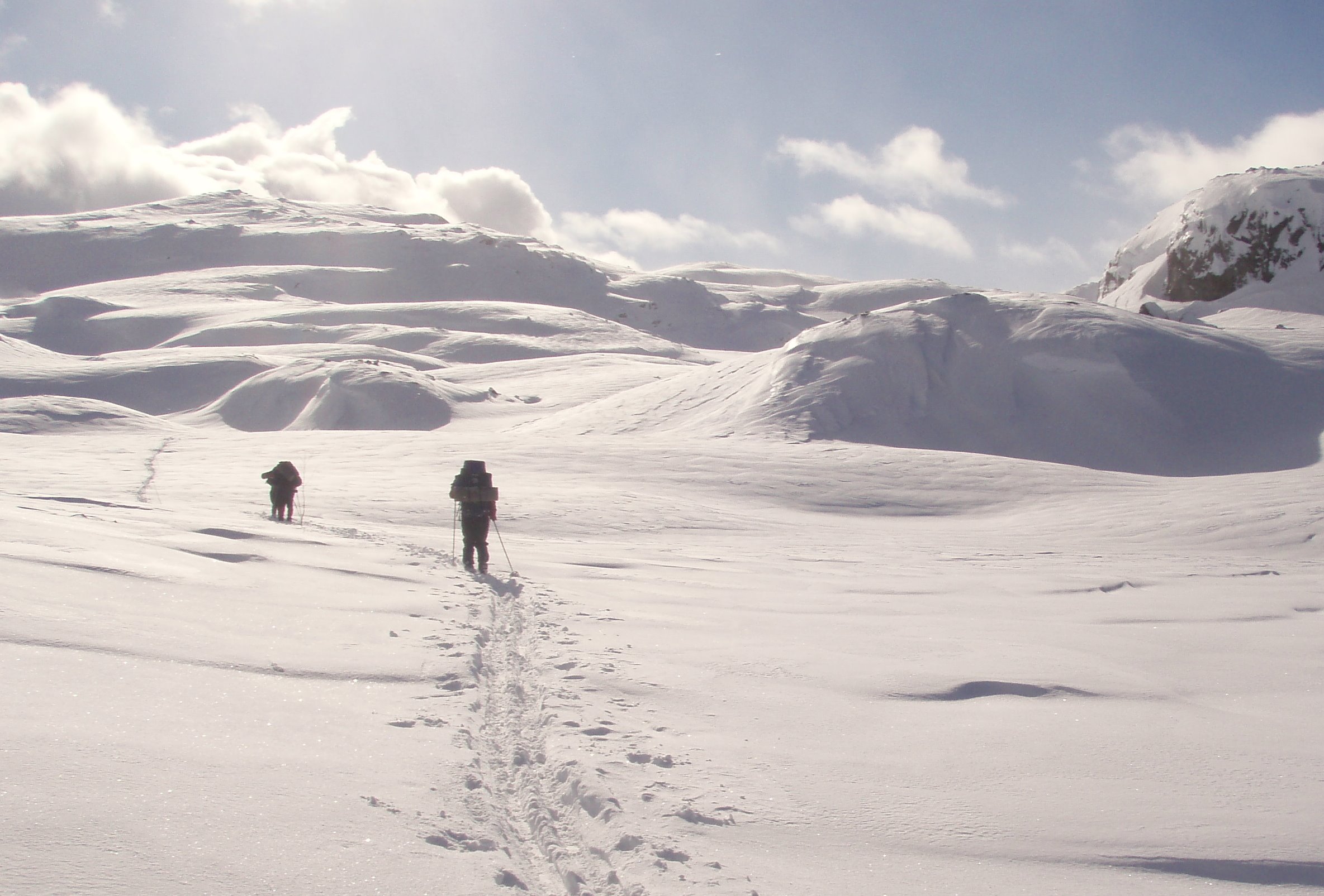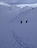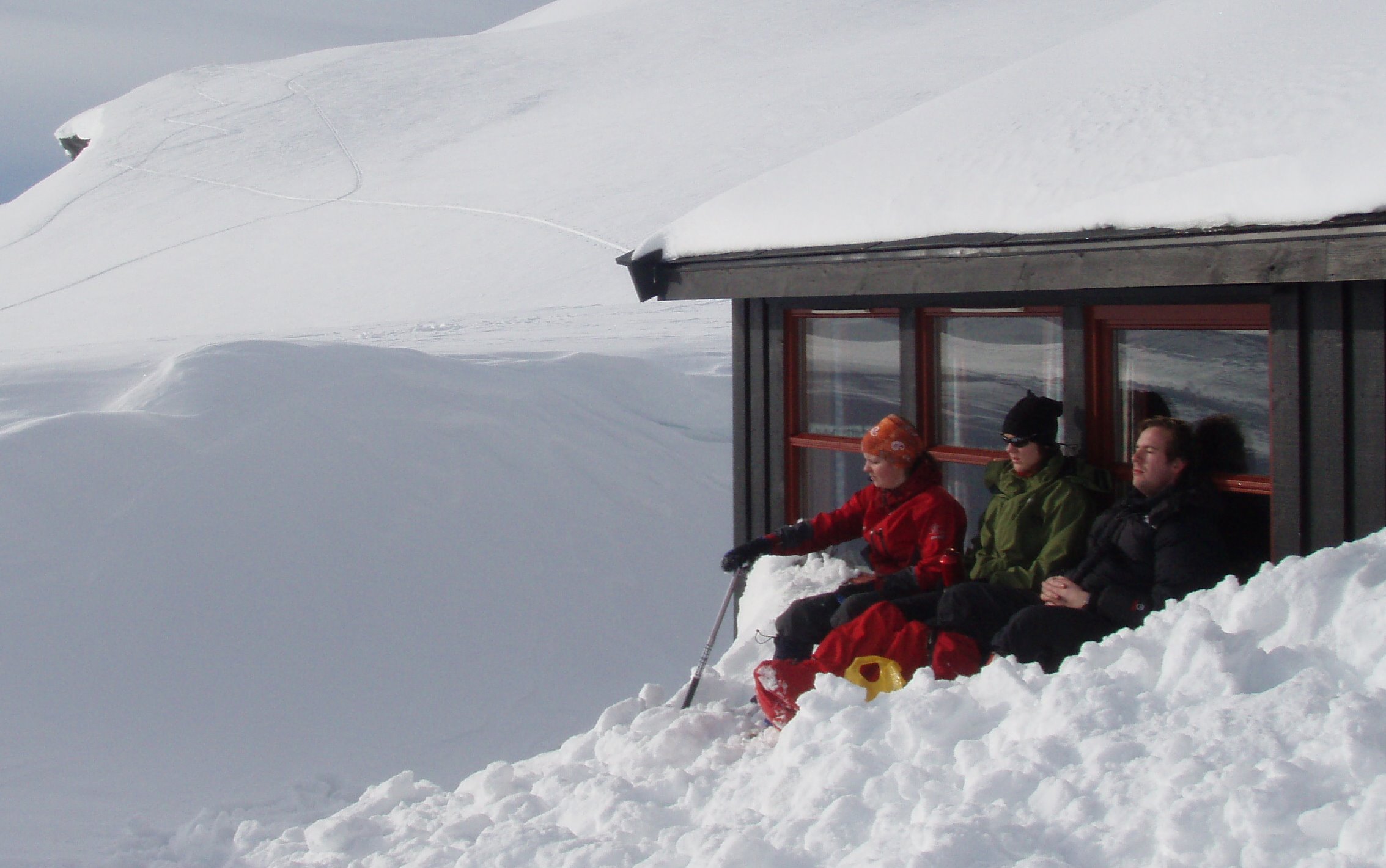 Forrige helg dro jeg sammen med min kjære og ei veninne til Haukeliseter hvor vi møtte den eminente kommende psykologen LikkjeBørting for å ta en tur sørover på viddene. Pål kom med buss fra Bergen så vi skulle møtes halv ett på dagen. Vi hadde brukt endel tid på å finne et egnet område å gå årets første skikkelige skitur i. Det er ikke like lett når man har veldig ulike fysiske forutsetninger. Planen var derfor å gå fra Haukeliseter - Holmavasshytta - Sloaros - Holmavasshytta og Haukeliseter igjen. Lørdag: Kom opp på fjellet. SNØ og dritdårlig sikt. Bussen til Pål kom og vi var alle enige om at det ville være latterlig å trave innover i ukjent terreng og uten tilstrekkelig trening i detta været og så seint på dagen. Dette var et svært klokt valg. Vi praia sovesalen på fjellstua, tok endel av utstyret og gikk en kilometer unna hvor vi lagde en deilig middag bestående av mexicansk og italiensk gryte supplert med kjøttdeig som vi stekte hjemme før turen. Vi tok en øl og en konjakk før vi pakka tingene klart for neste morgen. Værmeldinga meldte om lettskyet og sol neste dag. Søndag: Opp tidlig. Vekte nesten alle andre på sovesalen. spiste en gorumetfrokost bestående av brød, smør, falunkorv og banan på madrassene. Ute skinte sola. Blå himmel og litt bris. Fint vær... tungt skiføre. Målet var Holmavasshytta som ligger ca 15 kilometers travng sør for Haukeliseter. Dagen før gikk ei speidergruppe nesten halvveis før dem valgte å snu. Da hadde dem gått i mange timer. Vi hadde god hjelp i deres gjenføyka spor fra dagen etter som danna en slags "såle" i snøen så vi slapp å falle skikkelig igjennom. Men det var alikevel tungt å tråkke spor. Når vi kom til skiltet Holmavasshytta 10km / Haukeliseter 7km var det slutt på speiderhjelpa. Oppover bakkane mot Turistskardet på 1350moh var det et blodslit med banning og stønning, VM i melkesyre og en god dose tvil på om vi i det hele tatt skulle klare det eller bli nødt til å snu. Været var fremdeles bra og det var en veldig god trøst. Da vi så opp på siste skaret opp mot selve Turistskaret skjønte jeg at detta skal vi jaggu klare. 1 km - 150 høydemeter også er det bare plankekjøring til hytta.... Nuvel... Pål Christian starta som "1'er" opp bakken. Han gikk skikkelig på. Jeg husker jeg tenkte: "satan bli ikkje gutten sliten??". Men da vi tok en liten pustestopp et lite stykke oppi bakken og han sa "æ tar 4 pinna tel så får du ta over" så skjønte jeg at gutten ikke var helt fri for melkesyre. Men opp kom vi - det tok bare litt tid... Verden ble litt lysere. Bare 4-5 km igjen til hytta. Dette går fint... Ned 200 høydemeter fra skaret og på'n igjen med slit for den stakkaren som gikk først. Jeg går bakerst... Ser på sporene og sier: "satan... de som kjæm etter oss får det fint hær..." Jeg snur meg og ser bakover, og der ser jeg en kar komme susende ned bakken med et svært glis, vinker med armen når han passerer i god fart og roper "takk for hjelpa...." Sliten som fy tenkte jeg bare "sjøl takk, men nu skal du f*** mæ få gå fremst!!" Bjørn Erik som vår nye venn het tråkket avgårde og gjorde livet de siste kilometerne til hytta verdt å leve. Forøvrig en særdeles hyggelig mann som hadde masse turopplevelser å dele over kaffekoppen på Holmavasshytta. Pål Christian lagde forresten noen meget velsmakende pannekaker denne kvelden. Mandag: Bjørn Erik stod grytidlig opp og fortsatte ferden sørover. Håper snøforholdene bedra seg for han på turen og at han fikk en flott tur sørover i setesdalsheiene... Planen vår var egentlig å besøke Sloaros hytta som ligger ei mil fra Holmavasshytta. Dette blei skrinlagt da vi måtte utsette avreisen fra haukeliseter med en dag. Vi koste oss istedet i solveggen. Tok turen opp på en liten topp i nærheten og gravde snøhule i skavelen ved hytta, og pleide såre bein fra dagen før. Ingenting er som gnagsårene som dukker opp på årets første skitur. På kvelden tok Pål Christian og jeg på oss skia og gikk noen få kilometer i retning haukeliseter for å lage litt spor for neste dag siden sporene fra søndagen var sågodt som borte. Jentene lagde middag når vi var ute å gikk og da vi kom tilbake til avtalt tid ble det servert rykende varm Pasta di Parma. Tirsdag: Tilbake til Haukeliseter. Gårsdagens skitur var veldig lur viste deg seg. Selv om skispora fra kvelden før var nærmest igjenføyka gikk de første kilometerne forholdsvis lett. 200 høydemeter opp til Turistskardet var tungt, men ikke ille. På toppen fikk jeg akutt trang til å gjøre noe privat og tok en spade og et liggerunderlag og gjemte meg litt vekk fra de andre. Fin utsikt gjør at man ikke bryr seg så mye når vinde føyker litt snø på stompen... Nedover bakkene møtte vi 2 damer som skulle gå så langt som de kom i retning Lindesnes. Vi ønsket dem lykke til på turen og la ikke skjul på at vi var noen helter som hadde laga spor for dem til deres første hyttestopp. En lunsj nedover bakkene smakte særs godt før vi gikk videre slik at Pål skulle ha en sjanse til å rekke bussen til Bergen. De siste 4 kilometerne til Haukeliseter var mye lengre enn 4 km ellers... Det er jeg helt bombesikker på.... Det toppa seg da vi kommer 4 slitne gutter og jenter på vei opp en bakke med ett skispor i. Der møter vi ei som kommer ned bakken.... Hva gjør hun.... Jo drittkjærringa stopper midt i skisporet slik at vi blir nødt til å gå ut i løssnøen for å gå rundt henne oppover bakken. Den dama hadde fortjent noen saftige gloser om god kotyme i skispor, men det ble med en masse gloser som ikke slapp ut igjennom leppene. Vi rakk frem til Haukeliseter i god tid før bussen skulle gå. DNT burde forøvrig skjemmes av sine priser på haukeliseter. En ikka akkurat velsmakende liten kopp med kakao skal dem ha 25 kroner for.... Dette vil jeg kalle for et regelrett ran. Ikke kan dem skylde på dyre transportkostnader siden det ikke akkurat er fritt for 