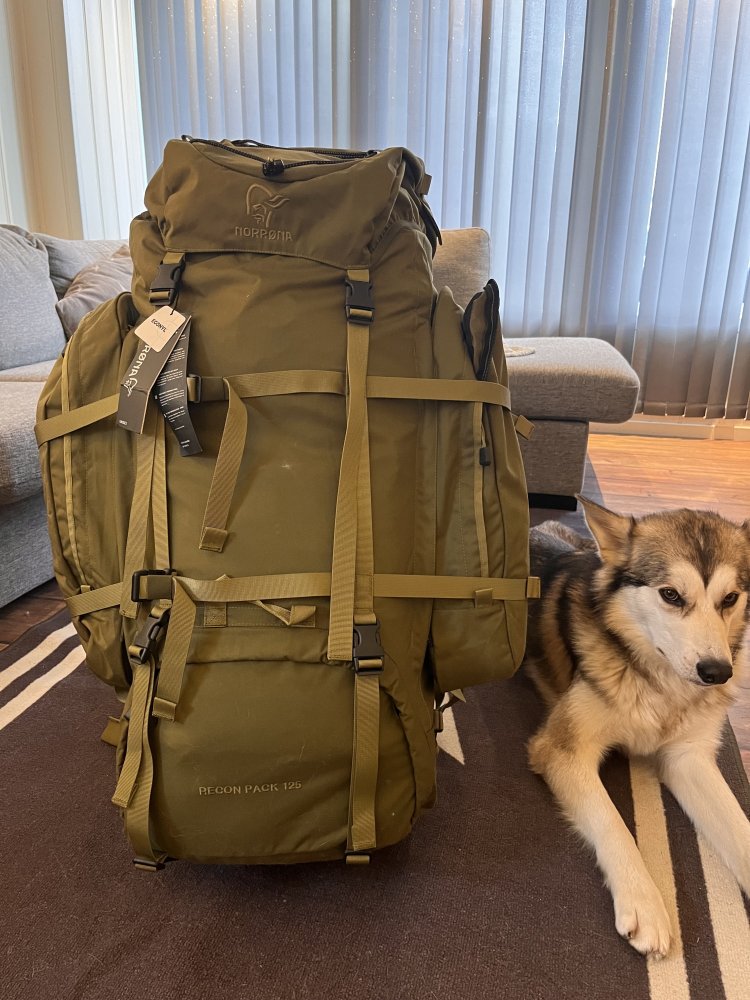 Etter å ha sikla lenge fant jeg en ubrukt sekk på finn. 30kg føltes som 15 med min gamle sekk. Gleder meg som et barn på julaften til å laste sekken alt for full å labbe ivei.