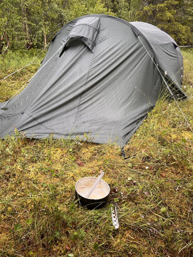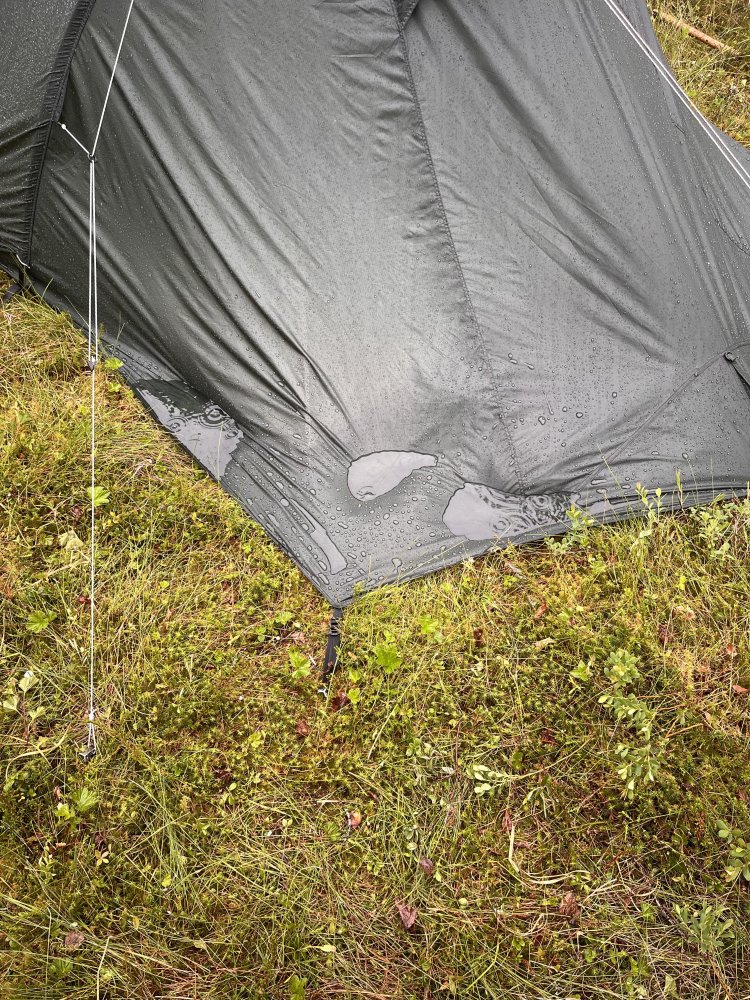 På det siste bildet ser jeg du har løfta opp sideveggen for lufting? Jeg har alltid plugga den i bakken men synes det har vært veldig rart da jeg må strekke den ganske langt ut? Er det det som er meninga? Kan legge til at jeg har hatt teltet ut i greit med regn et par dager nå og da virka det tett. Eneste problemet var at vinden etterhvert kom fra siden og traff langveggen slik at den ble pressa mot innerteltet. Da kunne det komme inn litt.