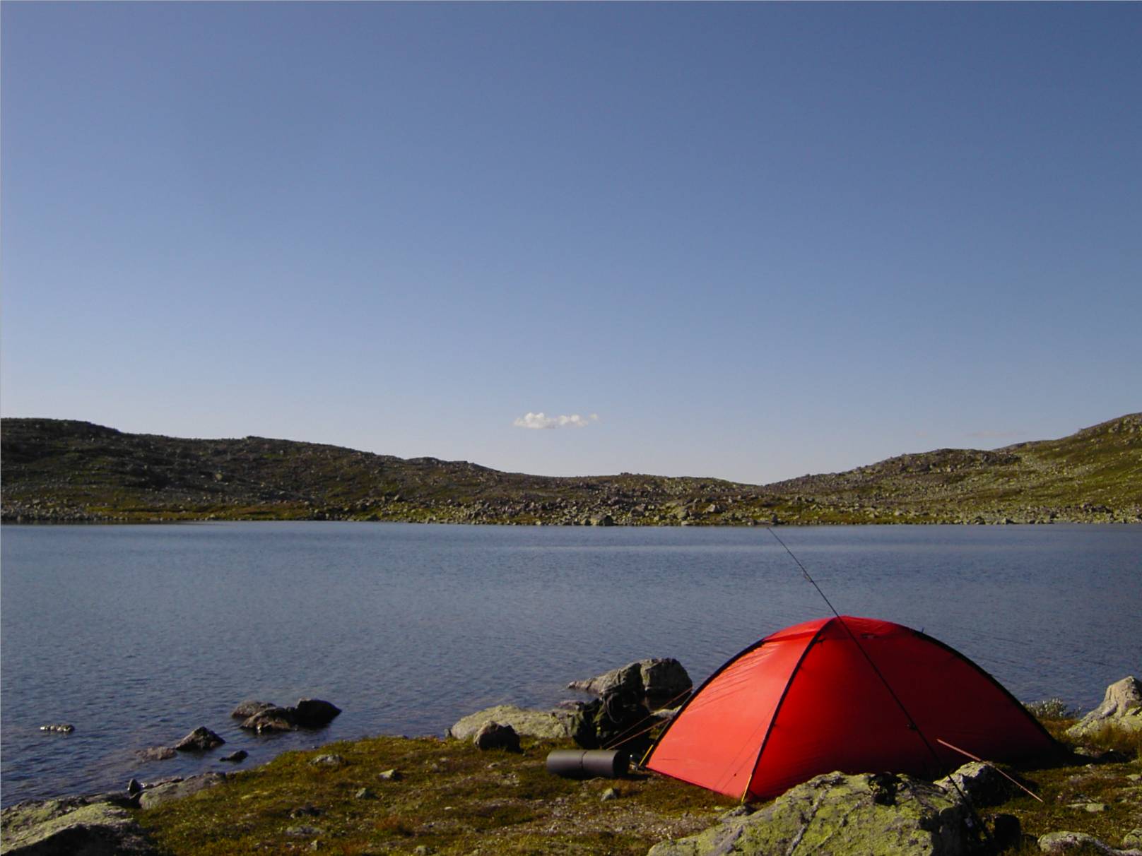 Vi slo leir midt mellom Nord og Midtfjorden. Da det det var overhengende fare for tordnevær også denne kvelden, slo jeg opp teltet ved en stor høy stein som kunne ta av for eventuelt lyn. Det ble riktig nok litt regn utpå kvelden, men tordeværet holdt seg heldigvis unna.