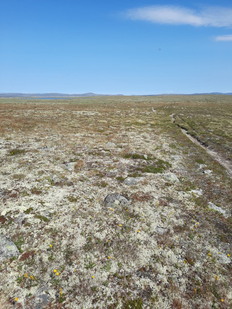 25. Dagens turmål var Nordre Bolnatinden 1389 moh. på Saltfjellet. De fleste toppene på Saltfjellet er avslepne og kjedelige, men ikke denne. Toppen har en spesiell form og er et landemerke på Saltfjellet. Oppstart fra Polarsirkelsenteret ved E6. Slak stigning, men litt bratt på slutten. Dette er en enkel topp for de fleste. Tur/retur ca. 10 km, tidsbruk mere enn 4 timer alt etter form. Temperatur 20 grader, litt vind og sol i dag. Toppen er litt til høyre for midten: Her krysser jeg polarsirkelen, markert med to store varder midt i bildet: Strengt tatt er vel polarsirkelen langt bak ryggen til fotografen, for den beveger seg 14,25 m per år mot nord. Mot nord, Semskadalen: Mot sør: Mot nord: