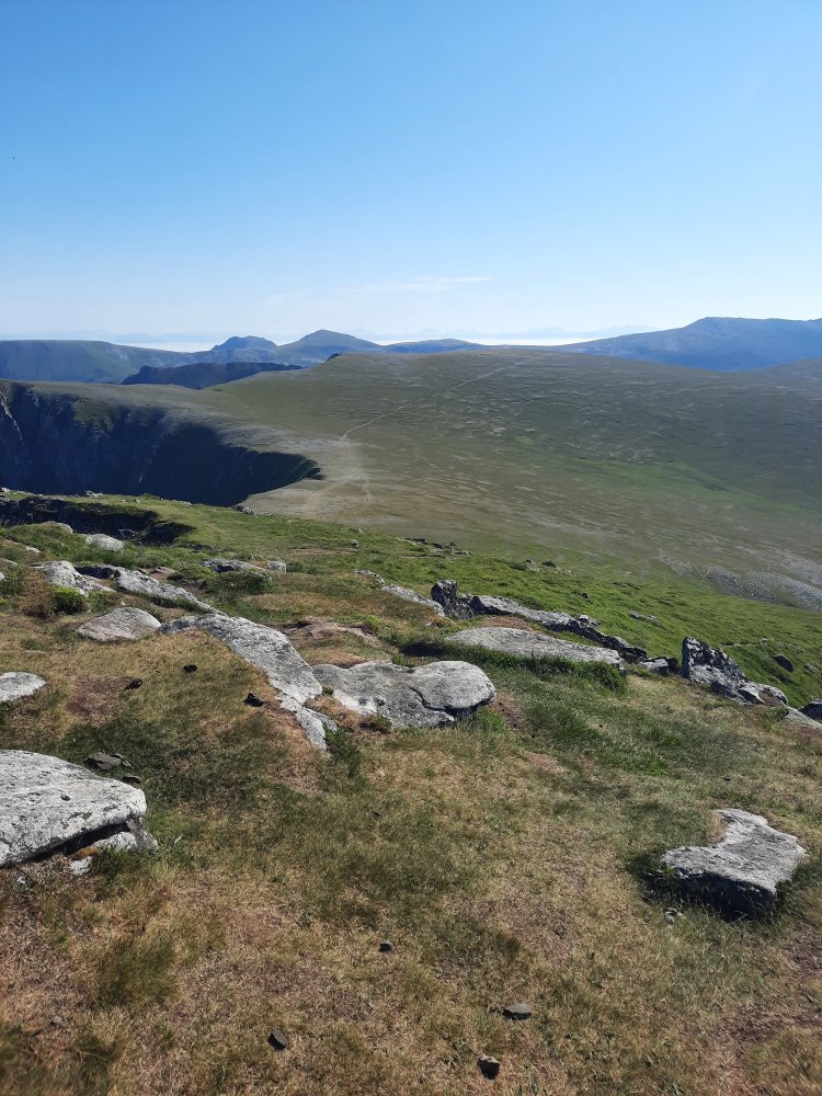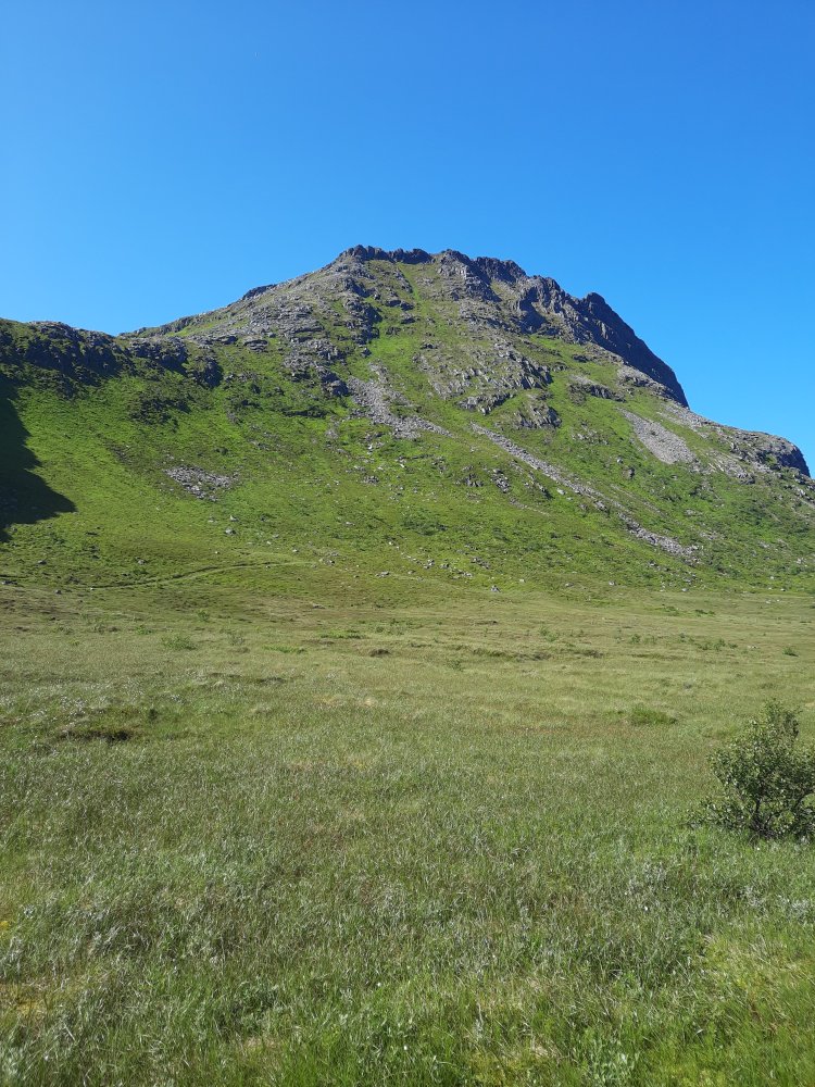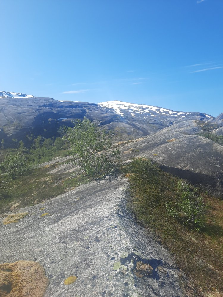 2. I dag så gikk jeg Hellfjellet 809 moh. i Vefsn kommune. Lengde t/r 9 km, det tok 4 timer. Oppstart fra golfbanen. Dette er en overkommelig tur for de fleste. På deler av strekningen så er det noe våt myr, så det er viktig med godt skotøy. I bakgrunnen skimtes de Syv Søstre: