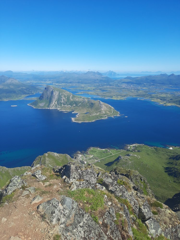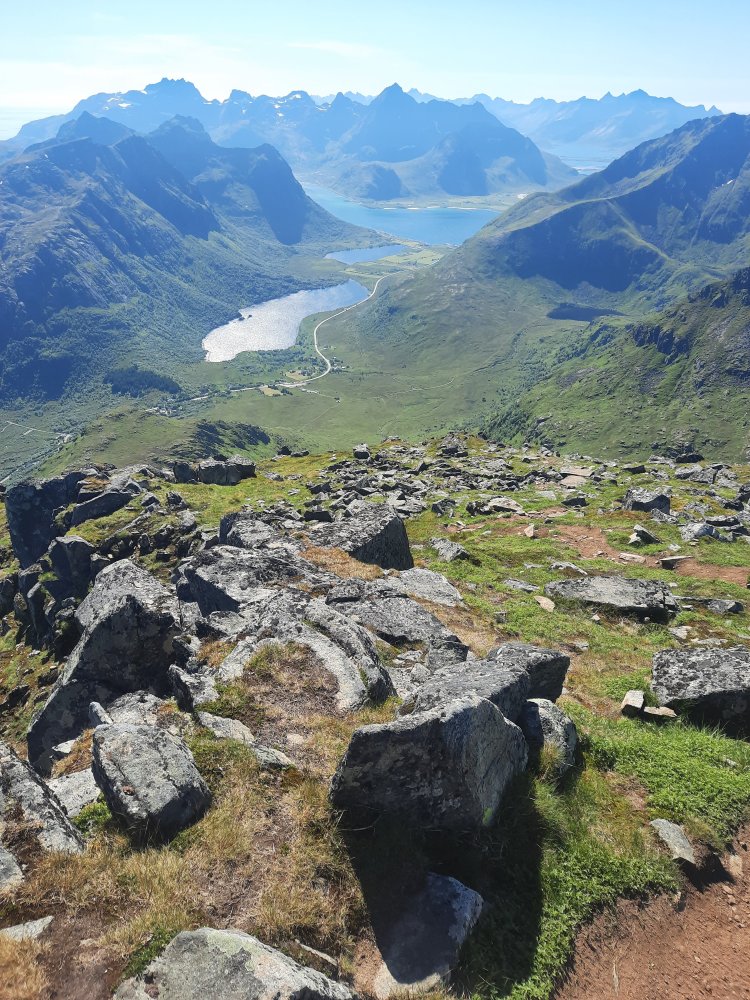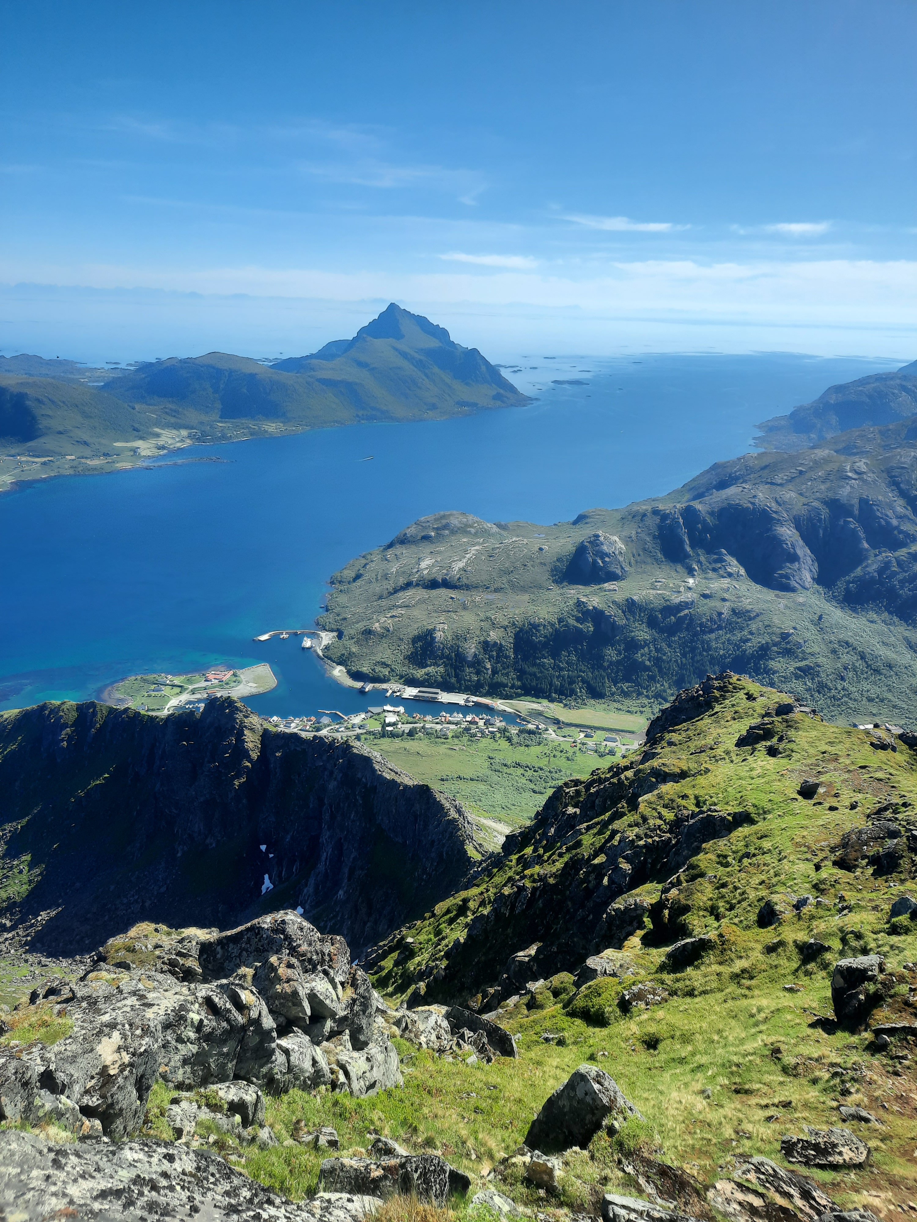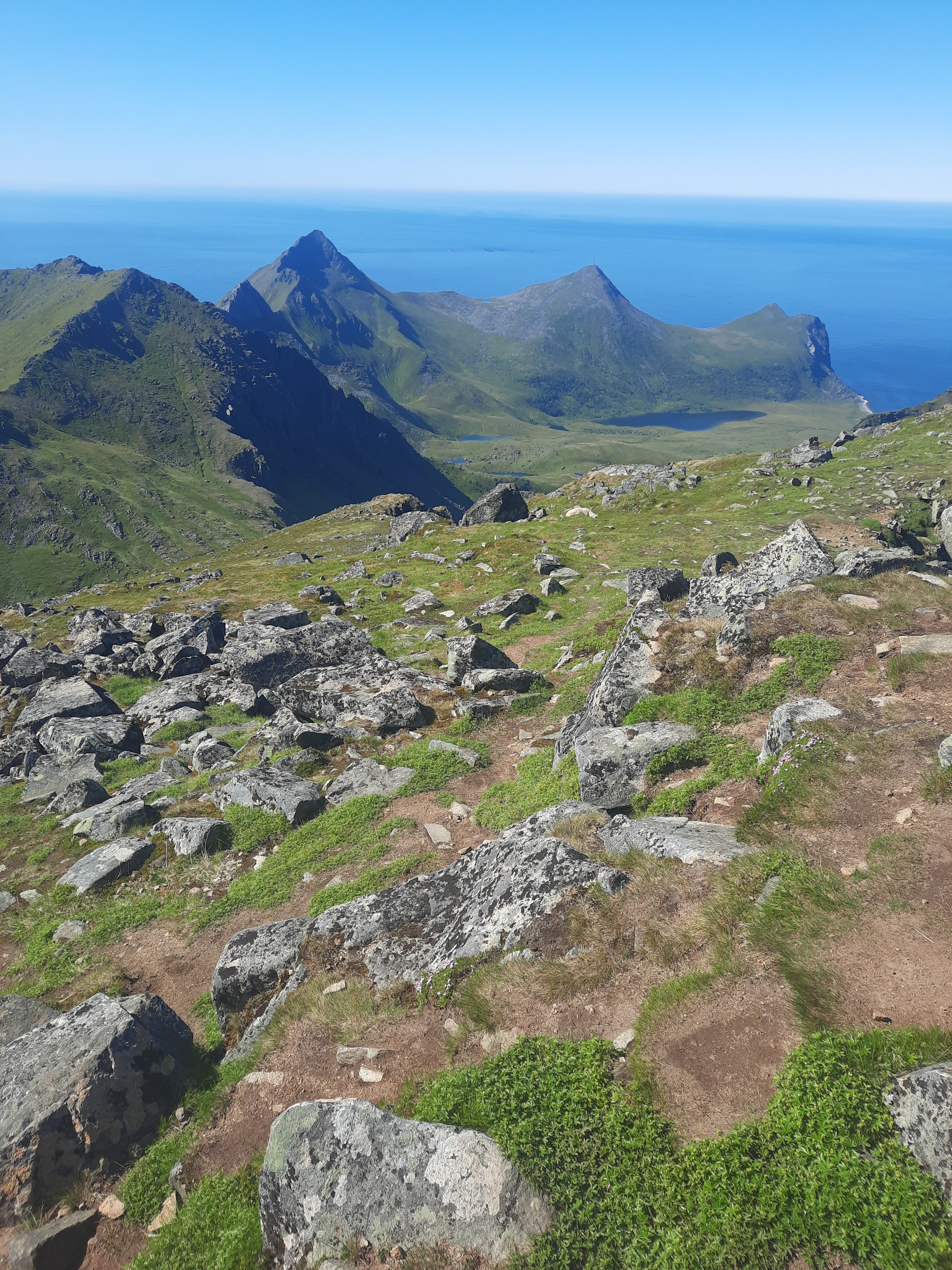 21. I går så gikk jeg Stornappstinden 740 moh. på Flakstadøya i Lofoten. Som de fleste andre fjellene i Lofoten er turen kort og bratt med fantastisk utsikt fra toppen. Oppstart fra E10 ved Nappskaret, lengde ca. 5 km t/r, tidsbruk ca 3 timer. Turmålet er midt i bildet: Nappskaret og E10 langt der nede: Mot vest: Fiskeværet Napp der nede; Nappstraumen: