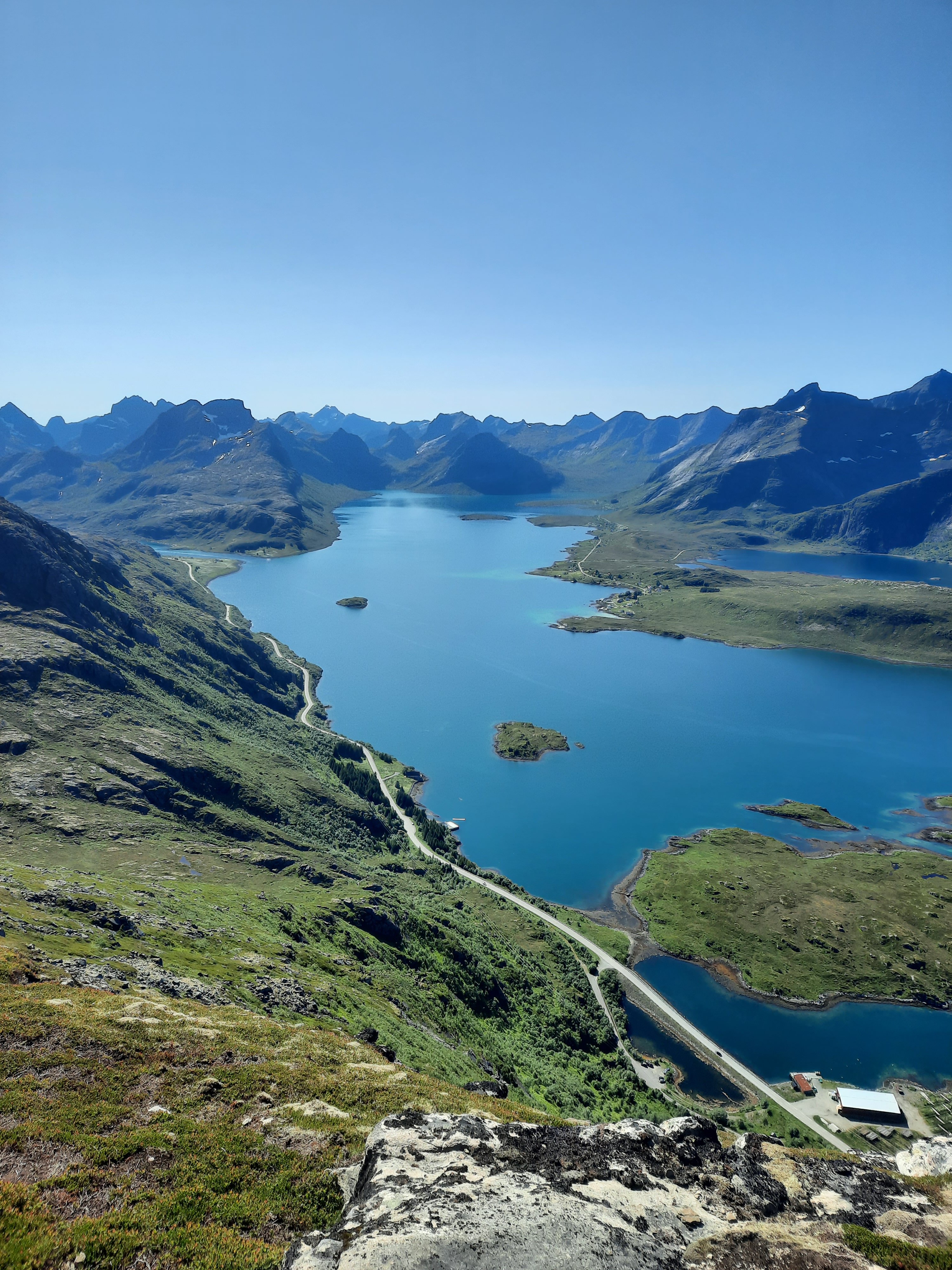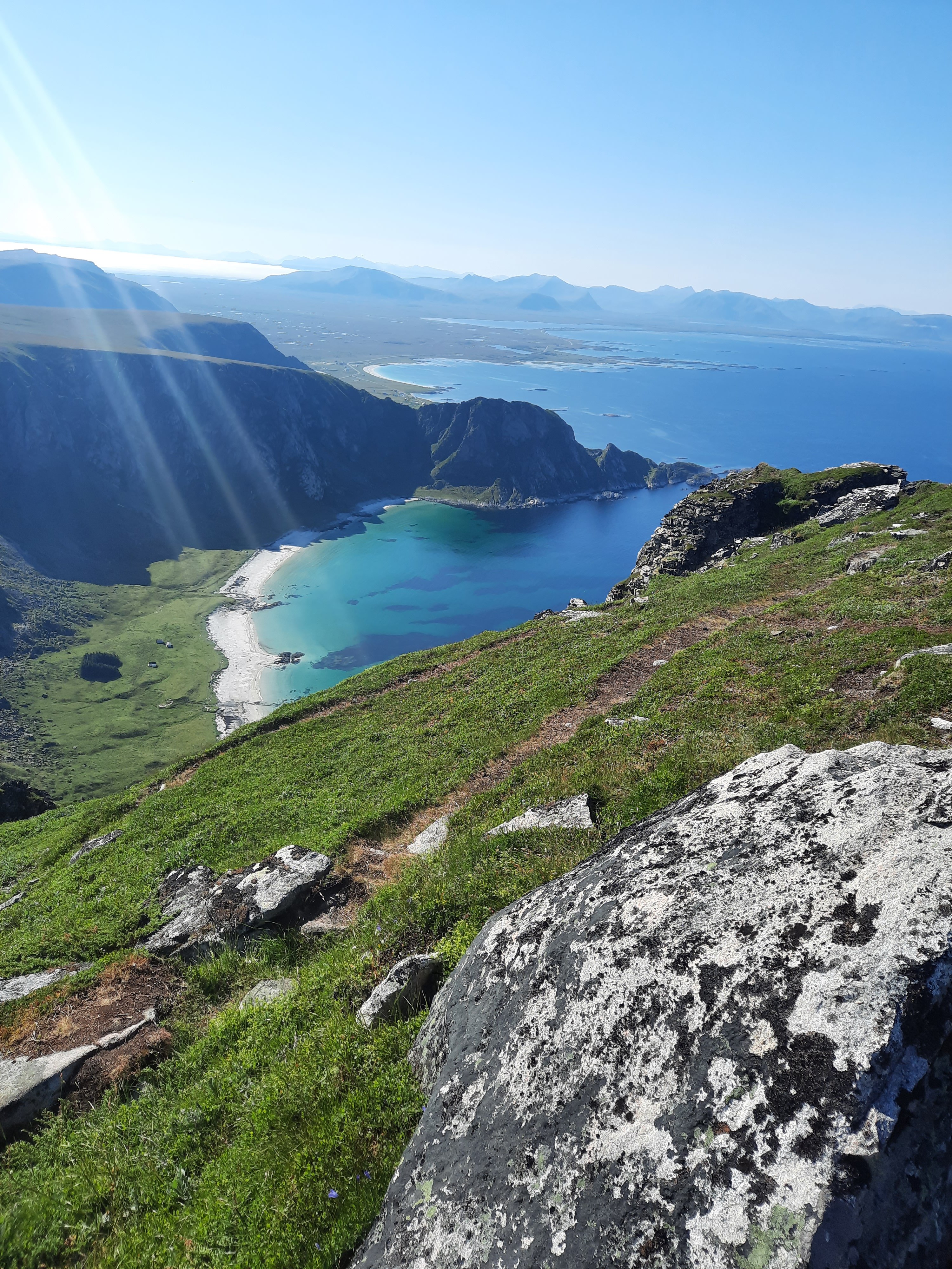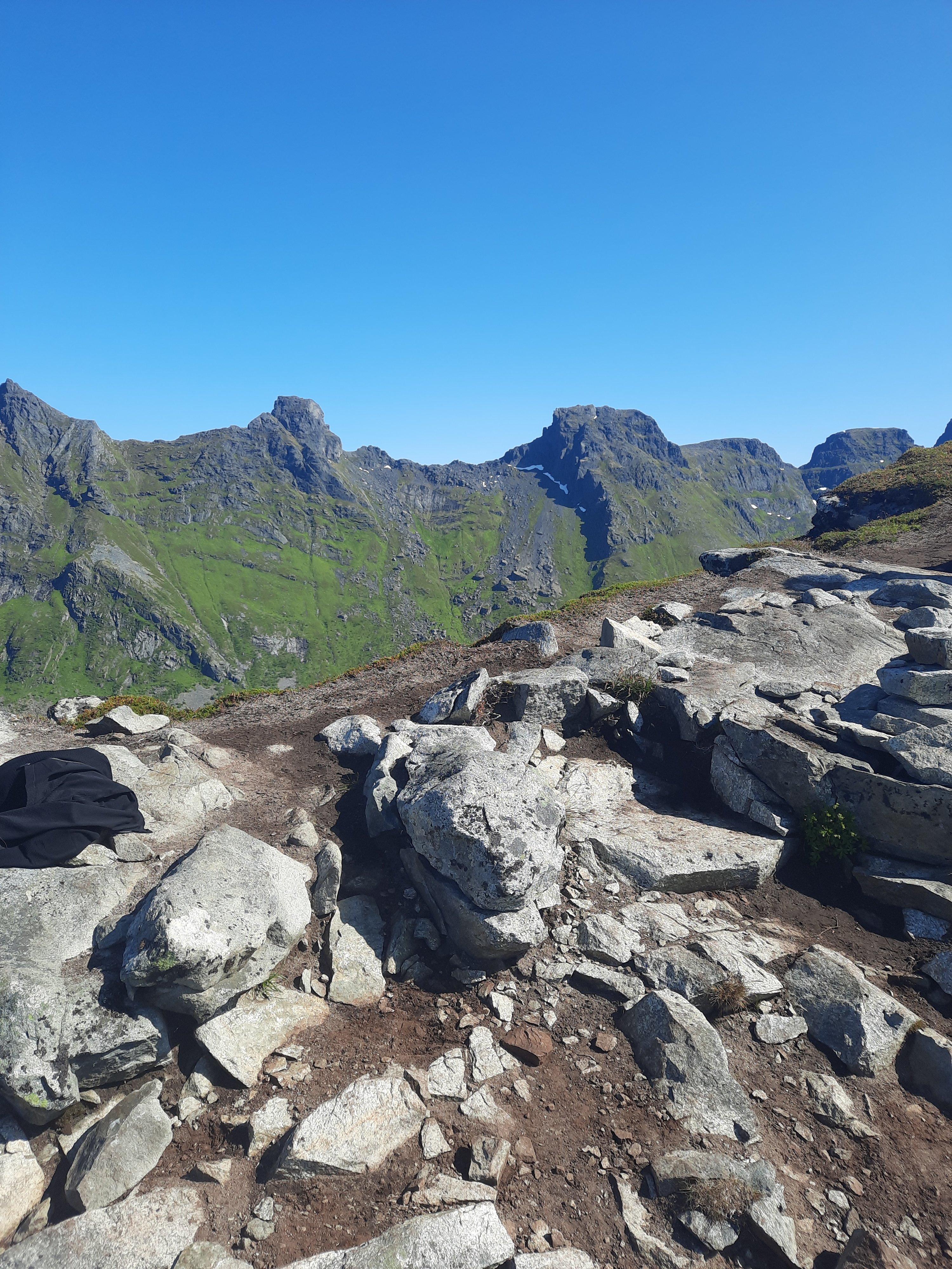 21. I går så gikk jeg Stornappstinden 740 moh. på Flakstadøya i Lofoten. Som de fleste andre fjellene i Lofoten er turen kort og bratt med fantastisk utsikt fra toppen. Oppstart fra E10 ved Nappskaret, lengde ca. 5 km t/r, tidsbruk ca 3 timer. Turmålet er midt i bildet: Nappskaret og E10 langt der nede: Mot vest: Fiskeværet Napp der nede; Nappstraumen: