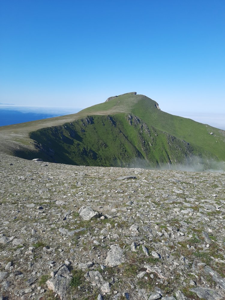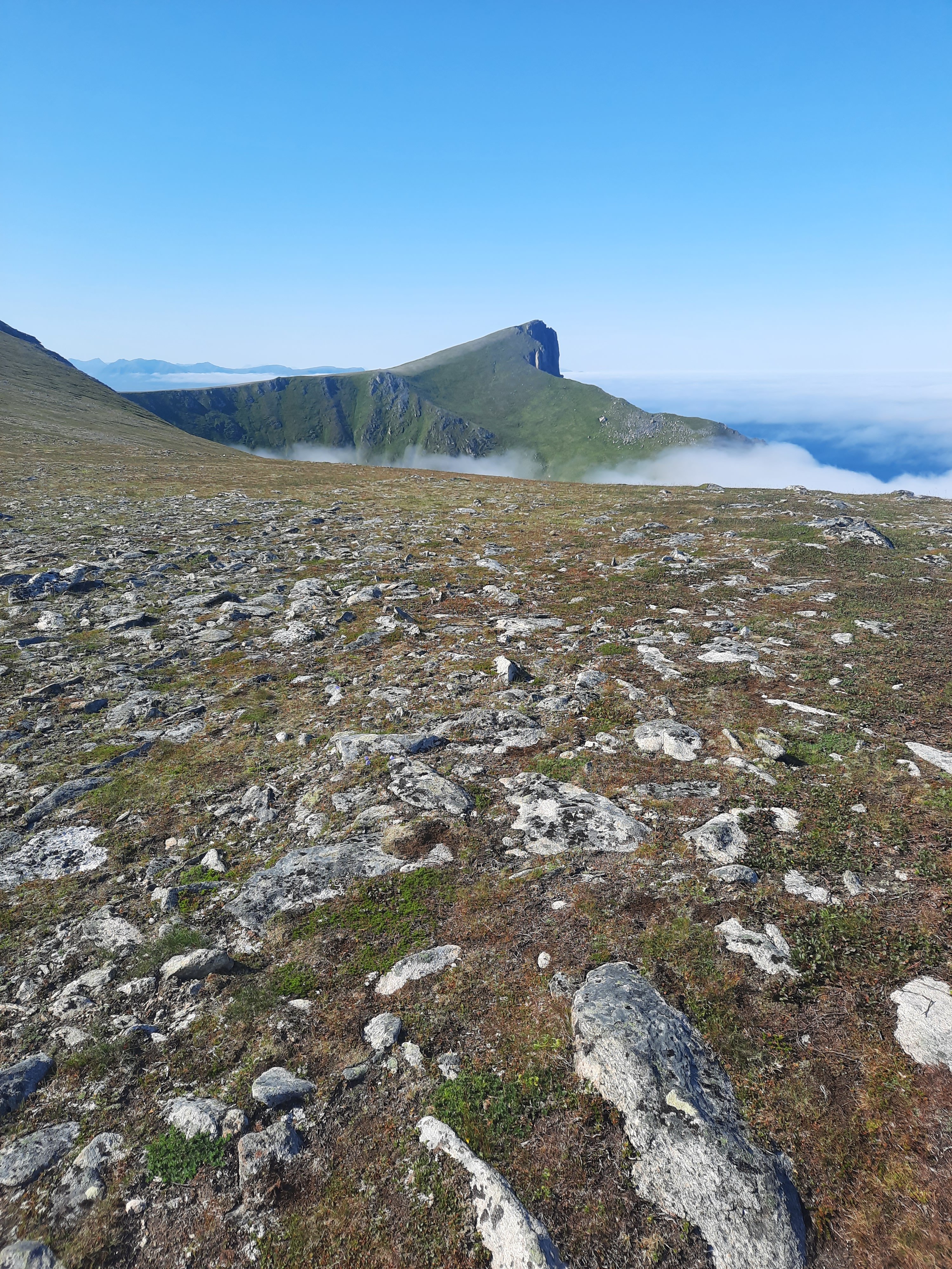 11. I går så var jeg på Måtinden 408 moh. på Andøya. Lengde t/r ca. 6-7 km, oppstart fra stranda ved Bleik(Solsvatnet). Dette er ei perle av en topp. Måtinden er en topp du må på Her er Måtinden: Litt nærmere: Fra Måtinden mot nordvest. Her kommer havtåka lurende: Mot sør: Her er jeg på tur tilbake fra Måtinden: