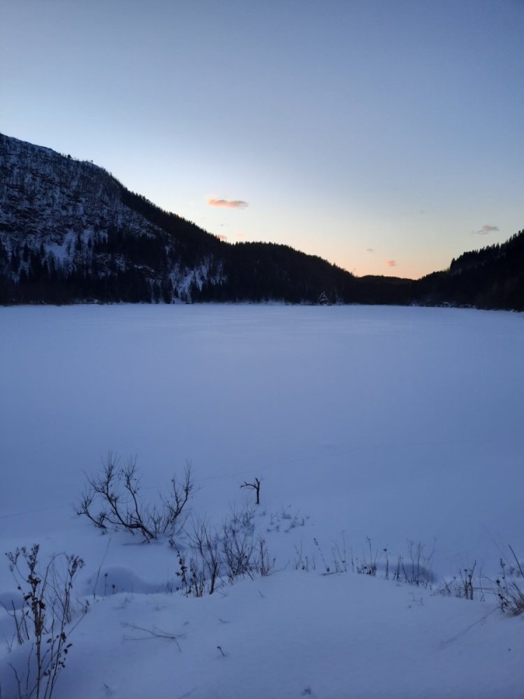 Bilder fra dagens skitur i Bodømarka. Bra vær, minus 11,5 grader og vindstille. Ved Tussvatnet: Ved Erlingbu, ser nesten sola: Ved Erlingbu, hvite topper så langt øyet rekker: På tur hjem: