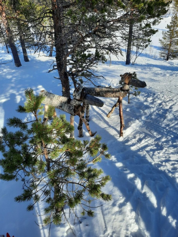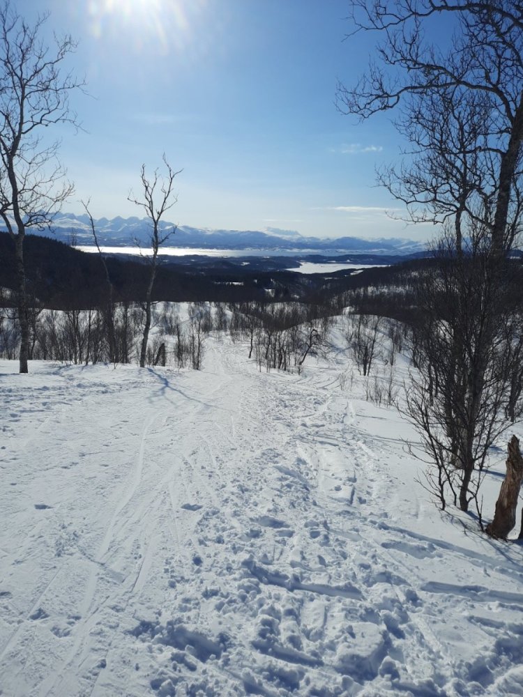 Fra dagens skitur til Bostoliskaret og Erlingbu i Bodø. Fantastisk påskevær og mye folk i marka. Soløyvannet og Saltfjorden sett fra Bostoliskaret: Jukseelger i tre: