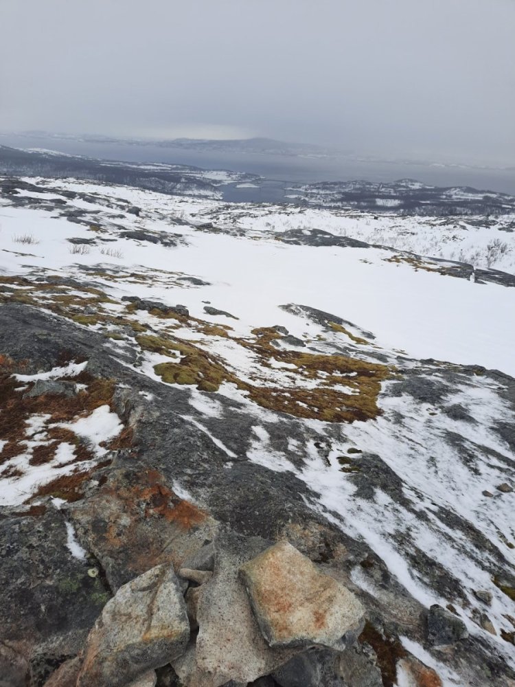Dagens tur ble en skitur til Tuvfjellet i Bodø, 299 m.o.h. Været var ikke det helt store, regn, +5 grader og litt vind. Men fin tur ble det likevel. På bildet under ser dere Bodø på den andre siden av fjorden. På denne siden av fjorden vises den notoriske Saltstraumen med brua over.