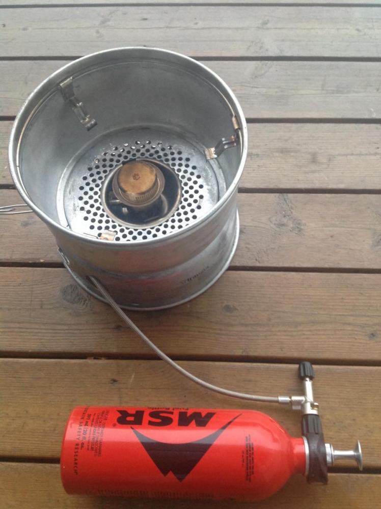 Den veier litt og krever riktig bra med oppvarming, gjør du det ikke riktig blir alt bare tull. Det ligger mye info og noen videoer på YouTube. Men lydnivået er ikke til å kjenne igjen. Du må regne med å øve litt på opptenning, men det er viktig å kjenne sin primus meget bra, oppstartsproblemer er ofte fint, da får du skrudd litt også. Har ikke knekt koden 100% på hvordan jeg trygt kan tenne den opp inne i teltet enda, slik jeg kan med Coleman. Har vanlig Omnilite montert med et adapter i et Tangia stormkjøkken og med Duossal gryter. Alu på utsiden og rustfritt innvendig. Litt nerdete oppsett, men flott og lage mat på, samt smelte snø om vinteren.