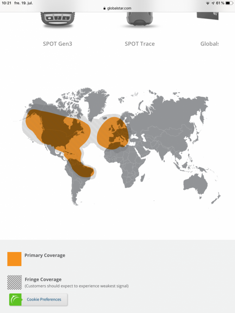Dekningskart for globalstar satelittnettverk Hvor du har tenkt på å bruke spot er meget viktig også. Di sier at det er betydelig bedre dekning for spot, kontra samtaler i samme nettverk. Blir litt som at du ikke kan ringe, men SMS går igjennom med varierende resultat. -