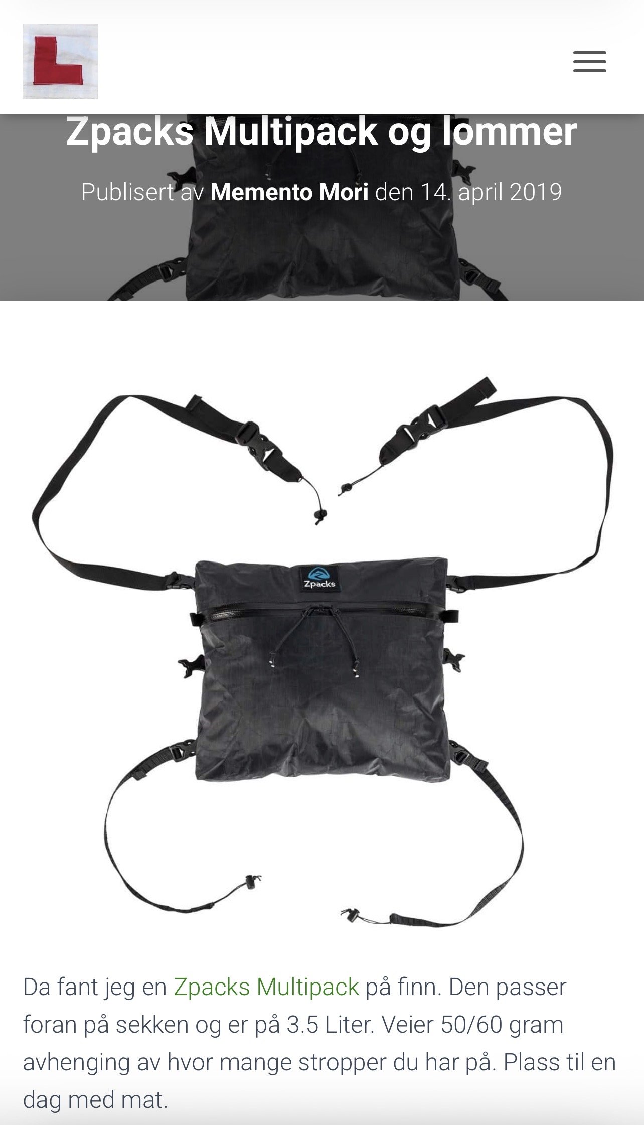 Jeg savner også en stor sekk, men en gang vekta går over ei viss grense på de UL sekkene jeg har prøvd, blir de ikke gode. Har jo Norrøna Recon Syncroflex 125 L, hvor hoftebelte vri seg. Har lurt på å ta av sekken og fått sydd en sekk i Dynema (Cuben fiber) Tror jeg hadde sett på muligheten for å fått ned vekta, slik at du kan få en lett sekk, eventuelt med ei frontlomme. Men avhenger av type tur, sesong etc. gi gjerne litt mer info så kan vi se hvilke muligheter som finnes. Budsjettet er vel også verdt å nevne.