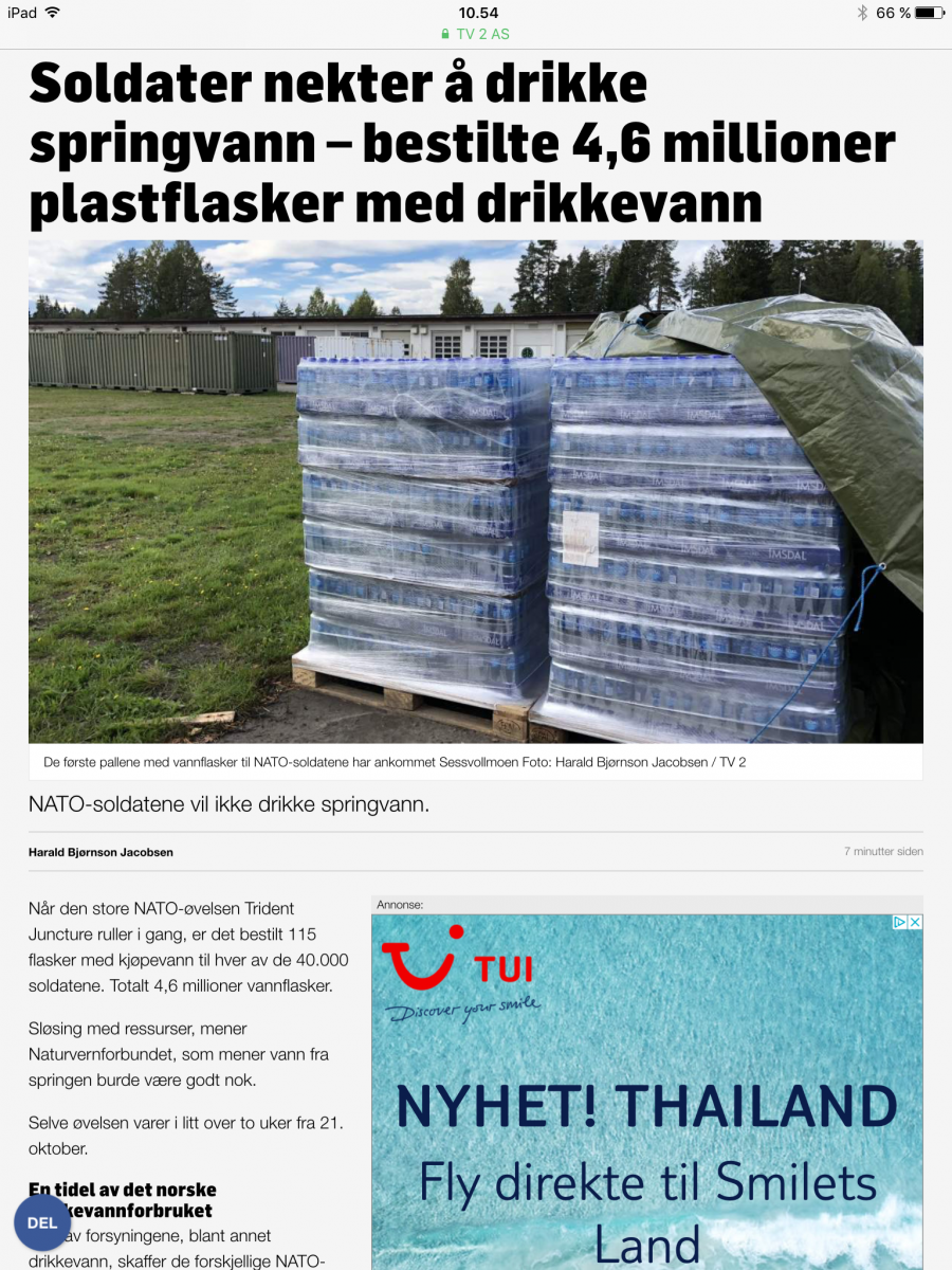 1. Det spørs om de har sett programmet om møkkete drikkeflasker på Tv2 på forhånd😱 Trodde øvelser også innebar å bli kjent med norsk natur, vi som drikker av de fleste bekker rundt omkring uten å bli dårlige. Springvannet i Norge er jo normalt utrolig godt på smak. Dette er jo galskap satt i system.
