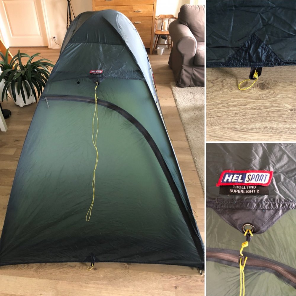 Jeg har modifisert mitt mitt Trolltind, for å takle litt snø, og for å kunne bruke den til et tarpfeste. På siden på toppen, fikk jeg satt på to bardunfester som er for å feste tarp. Meget pent utført arbeid av Helsports serviceavdeling. Kan ikke se at dette ikke er standard. Ekstra bardun på ventilen, slik at den holder seg oppe ved snø. Ekstra pluggfeste for å holde ytterduken unna innerteltet ved snø. Ekstra Bardun på ventilen nede, for å holde den åpen i snø, samt ekstra pluggfeste her også. Veide også en stang, for å se om det var mye å spare på å bytte til Carbon. Det blir ca 180 gram å spare hvis jeg ønsker å gjøre det. Vil da få vekta inkl plugger ned i ca 1.2 kg. Snøen har jo kommet tidlig i høyden i år, og med disse modifikasjonene er jeg klar for høstsesongen med hvit overraskelse.