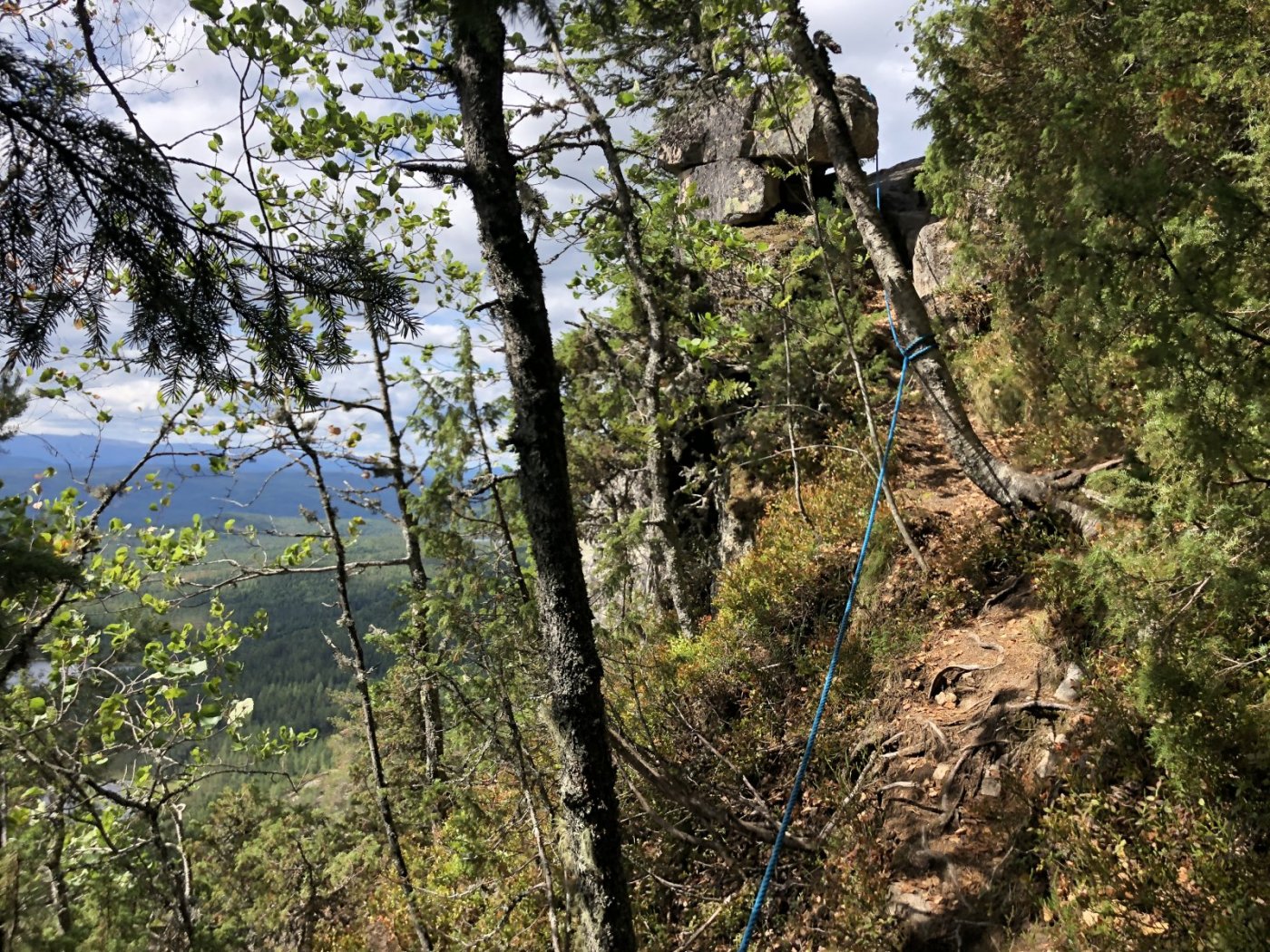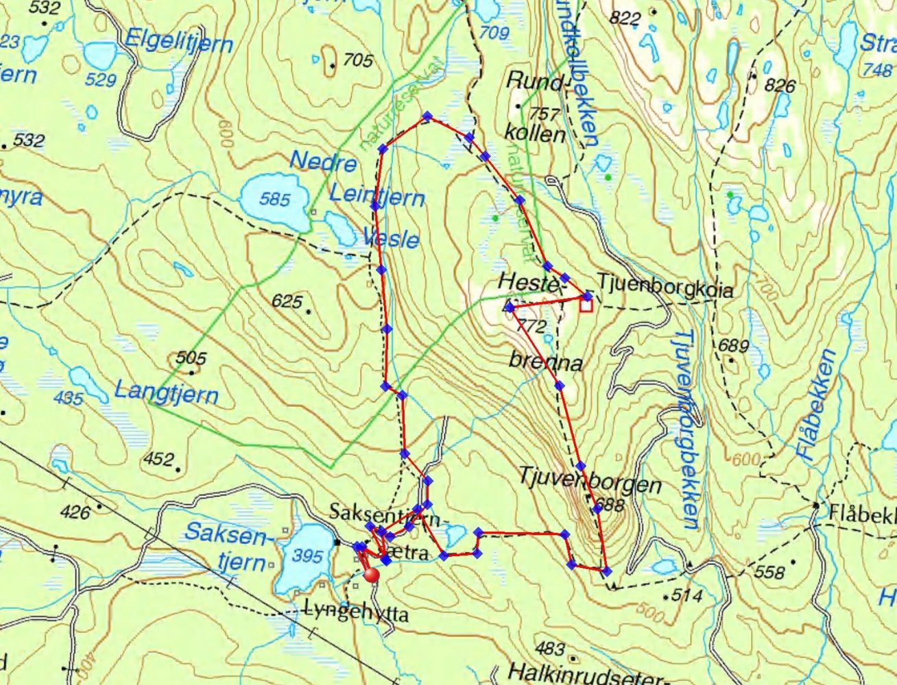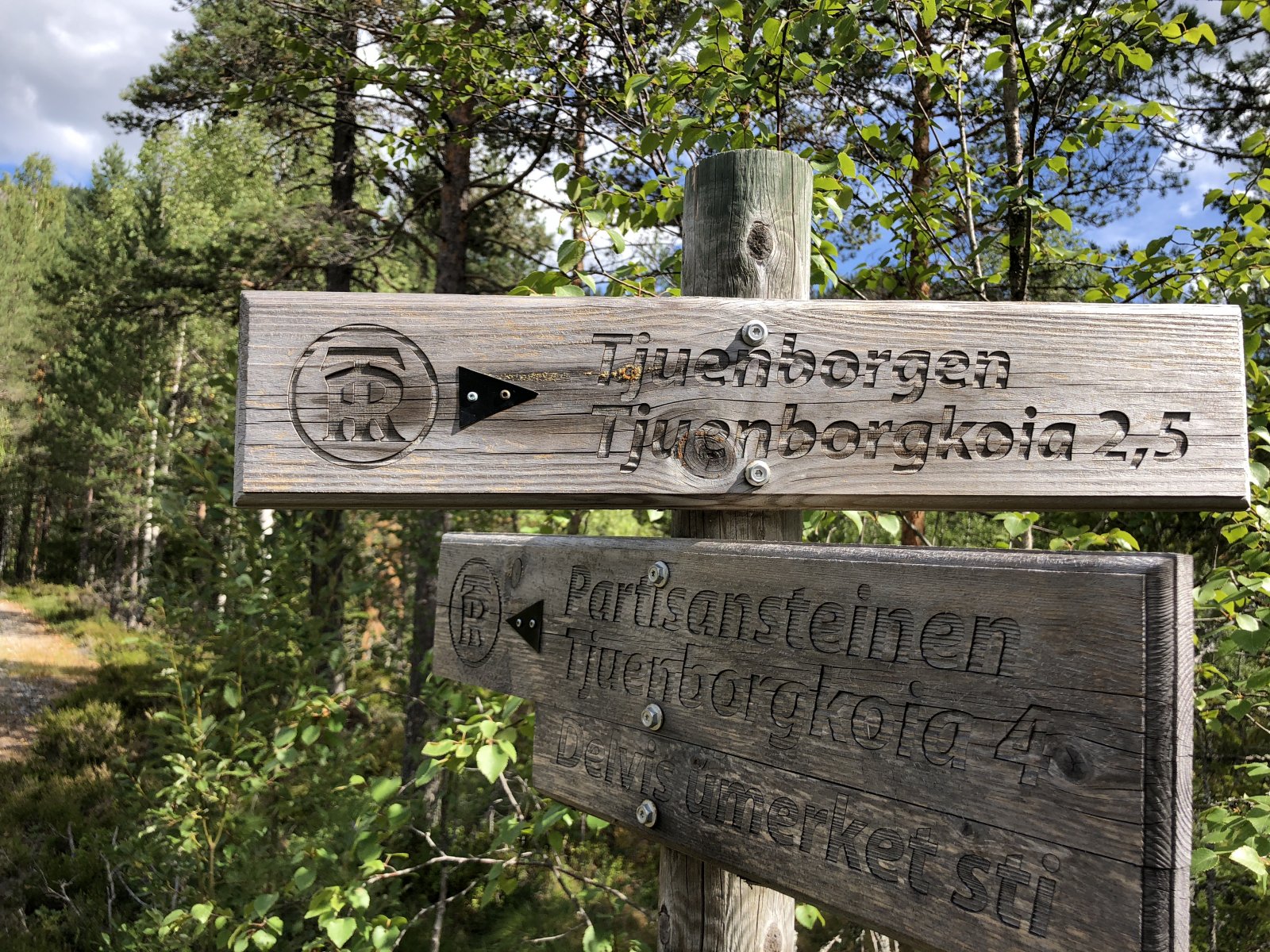 Ti på topp Ringerike, pleier å ha en "høgfjellstur" hvert år. I år det det Hestebrenna og Tjuvenborg som var denne turen. Bare det og komme seg til utgangspunktet som ligger ved Saksentjern er en liten ekspedisjon. Først til Sokna, så inn 10 km inn Strømsoddbygda på asfalt. Det er teknisk mulig å kjøre med bil til Hedalen (Vassfaret) via små åpne grusveier. Derfor skiltet over. Etter 10 km, er det over på en liten grusvei med bompenger 4 km til. Hestebrenna er er del av Ådalsfjella, hvor Vikerfjell og Høgfjell (1010 MOH) er mest kjent. Litt for langt for en nærtur, etter min mening. Men en flott tur, med mye historie. Dette er den minst gåtte turen i år, sikkert på grunn av reiseveien. Tjuvenborg ligger som en vorte som stikker opp i terrenget. Fra stupbratt, til bratt på alle sider. En tur som har vært merket opp lenge. Selve røverhula ligger her, og du kan se den fra nedsiden, hvis du vet hvor den er. Det er mye sagn om Tjuvenborg kilde: Ifølge sagnet skal røverne ha overfalt gjeterjenta Tiril-Tove på Oppensetra og fraktet henne og mye tjuvgods opp til røverhula. Her ble den stakkars jenta holdt som fange, og fortvilet diktet hun ei vise med følgende tekst: Tiril-Tiril-Tove, tolv mand i skove, vesle baane dænger de, buhunden hænger de, bjeldekua binder de, storstuten stinger de, budraatten bær de fra, mig vil de med sig ha, langt, langt borti skove. – ukjent opphav Tiril-Tove sang visa utover dalen, men ingen hørte henne. Da røverhøvdingen ville gifte seg med henne, sa Tiril-Tove ja, på den betingelse at hun fikk gå tilbake til Oppen og etter brudesølv. Det fikk hun, men måtte love å ikke snakke med noen. Men på veien tilbake merket hun veien med tøystykker så husbondfolket kunne skjønne hvor hun ble holdt fanget. Tilbake på Tjuvenborgen skjenket hun røverne fulle, og bygdefolket tok seg ned til røverhula fra den minst bratte sida og overmannet tjuvpakket. Flere av røverne styrtet i døden utfor stupet fra Tjuvenborgen, som fjellet ble hetende etterpå, men for Tiril-Tove endte historien godt. Litt stein, og ras før du går inn på kanten. Ut til selve hula er det satt opp tau. Mer info på Peakbook link Litt lengere film jeg fant om selve røverhula. Luftig, det er tau på de værste plassene. Det er klyving for å komme opp. Fra toppen ser du langt både sør og vestover. Bilde er tatt sydover. Vestover og ned ser du parkeringsplassen. Fint og raste på kanten. Her er det også rester etter bål. Må være den perfekte plass for ættestup . Ref NRK serien Vikingarna episode 1 ca 1.50 utti. Fra Tjuvenborg ser du bort på Hestebrenna, som var dagens mål. Fra østsida av Tjuvenborg ser du også ganske langt. Ganske lett å gå en umerket sti for å gå rett til Hestebrenna. Ti på topp har hengt opp et merke her. Det et ca 5 km i luftlinje til Høgfjell på 1010 MOH, Hestebrenna ligger på 772 moh. Tjuvenborg sett fra Hestebrenna. Rett nordover fra Hestebrenna Det begynte å blåse, så jeg gikk ned til Tjuveborgkoia, for å raste der. Partistan steinen er et krigsminnesmerke Det er to koier her, en gammel og en litt mindre og nyere. Vassfarstien går forbi her. Nok et flott naturreservat. Antagelig har det vært skogbrann her, og området har fått stå utrørt etter dette. Lett å finne stien her. Lynet slå ofte ned i furu, og de blir litt rare etterpå. Soknaområdet er kjent for mye bær, etter krigen gikk det "bærtog" til område. Plukket en pose til min far. Litt uvær på gang, men jeg slapp unna med litt vind. Her er ruta jeg gikk.-