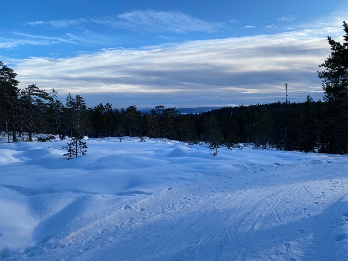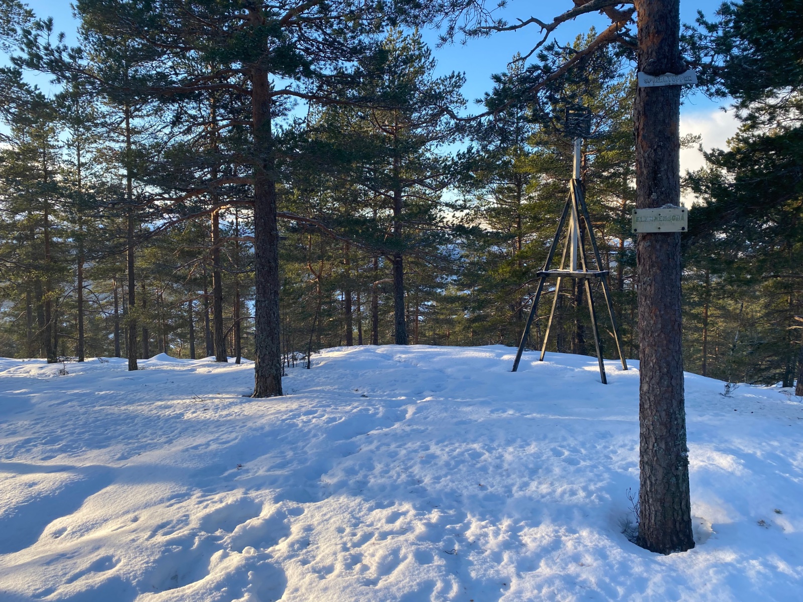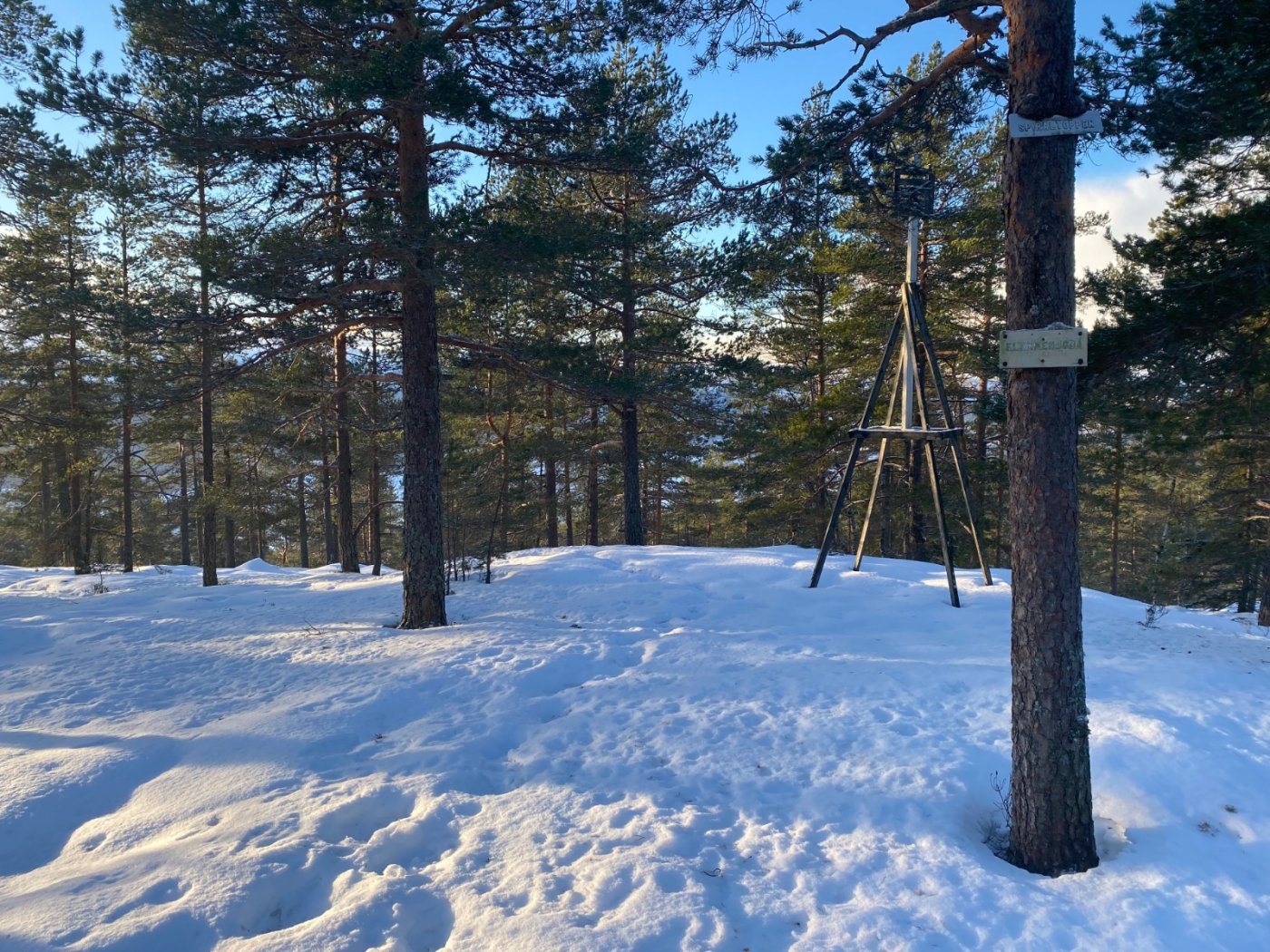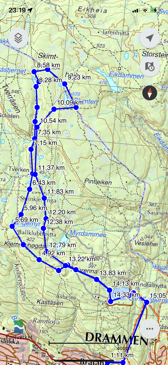 Ble en 4 timers skogstur til fots i Finnemarka idag. Turen begynte ved Åssiden bydel i Drammen, hvor turen gikk til Landfalltjern (320-31 moh), derfra gikk turen videre til Tverken sportskapell over Klemmehøgda. Her nøt jeg litt kjærkommen avveksling fra tråkking langs skisporet da labbeløype-laget hadde laget autostrada-sti på strekningen. Fantastisk innsats som bare må berømmes! Fra Tverken gikk jeg igjen langs skiløypene over Skimten/ Skimtrunden (554 moh). Herfra begynte hjemturen som gikk over omtrent samme løype. Her ligger et kart over turen jeg gikk. Endte på omlag 18 km totalt. Klemmehøgda kledd i vinterlig prakt 🌲 Skimtvarden, turens høyeste punkt (554moh) Har vært her mange ganger tidligere, men aldri i januar da jeg labber og ikke går på ski. Fin og tørr snø i harde løyper og passe kaldt. Fortreffelig utsikt over Drammensfjorden fra området mellom Skimtvarden og Skimtvann. Måtte stoppe og nyte utsikten. Når det gjelder turer i -9 grader så skaper det et kontinuerlig behov for å røre på seg for ikke å fryse. Hadde store planer for koking av drikke og attåt, men bekledningen vanskeliggjorde pauser av betydning. Er også langt mellom trivelige steder å slå seg ned når det er snø overalt. Ble derfor en slanketur heller enn koseturen jeg hadde tenkt. Valgte liten sekk så hadde begrenset plass til ekstra tøy. Ble en hestehandel mellom godt vandretøy og god gåtemperatur og fare for svetting. Traff godt her synes jeg, men prisen var kontinuerlig bevegelse. Turen var fin og frister til gjentakelse ved senere anledning.
