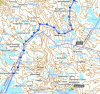 lengde 29 km (6,2 km på et vann), 790 meter (total stigning)