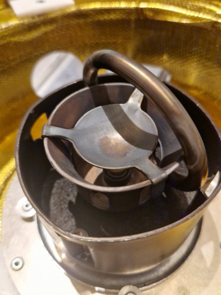 21. Som Marius sier, disse ser ut til å brenne helt fint. Noe småtteri av belegg blir det i brennerklokken, så det du har tatt bilder av er helt normalt. Litt varierende, men de er forvarmet med rødsprit/bensin, litt avhengig av hva som blir med på tur. Whisperlite er kun forvarmet med rødsprit.