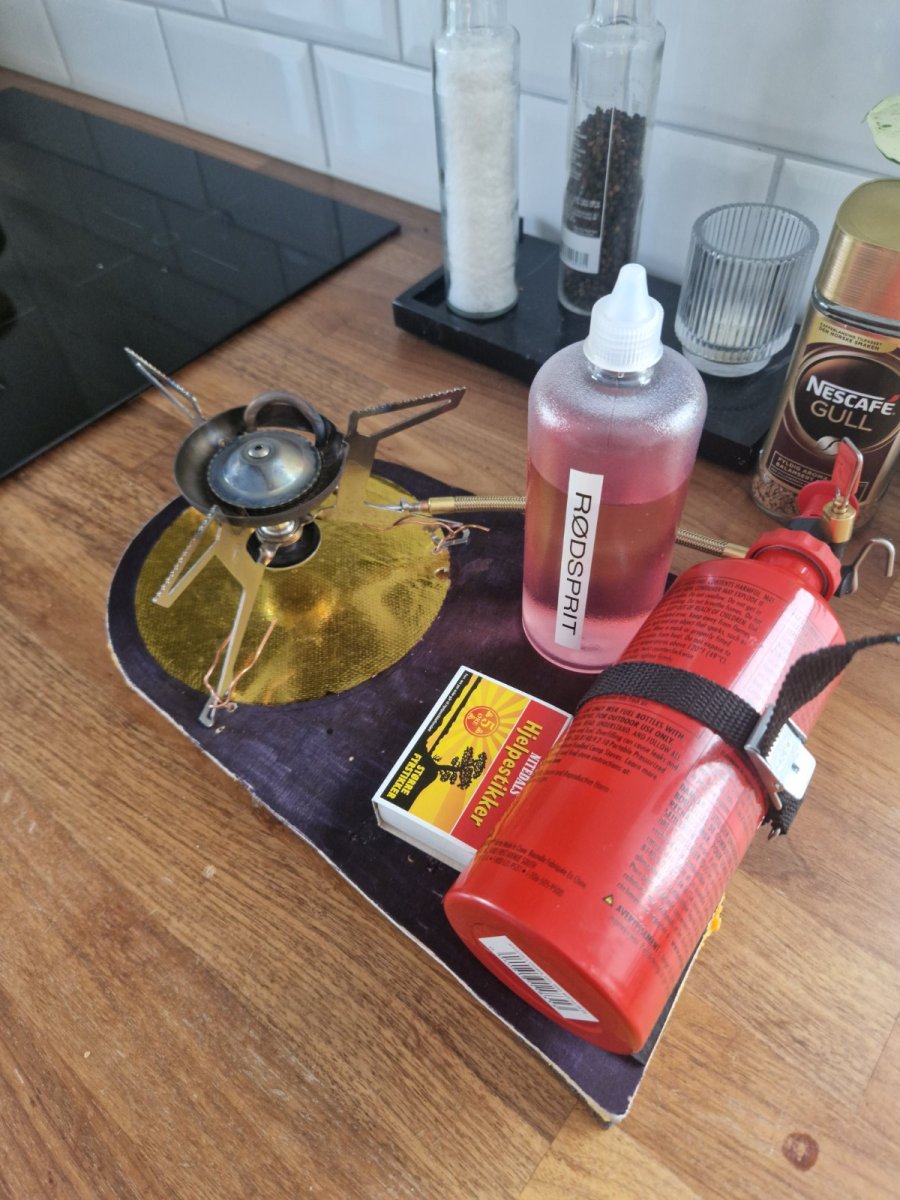 18. Jeg har fyrt mine brennere på alkylatbensins fra Aspen/CirckelK/FK. Men vet noen har nevnt at deres brennere oppfører seg rart på feks coleman om det er noe i det vet jeg ikke. Er det ingen te-lys flamme er det nok tett rundt dysen din. Ja, det spiller en stor rolle hvilken vei teltet står. Hvis teltet står feil vei så ventilerer du avgassene imot deg å igjennom teltet.Ved å ha forteltet på lesiden ventilerer du avgasser, kullos og damp ut av teltet å ikke mot der du sitter. Kullos er luktfri, fleste som opplever forgiftning skjønner aldri hva som har skjedd med de før det er for seint. Så sansene er som regel særdeles dårlig til å oppfatte kullos. En whisperlite blir meget sotetet ved forvarming med bensin, langt verre enn feks en xgk. Derfor bruker jeg kun rødsprit på den til forvarming. Hvis du heller rødsprit ned i en varm brenner for så å tenne på for du deg nok en overraskelse i form av en stor poff og noe flotte flammer. Trenger brennere lengre forvarming slipper man ut mer bensin eller ekstra rødsprit før man begynner ellers venter man til brenner er kald.