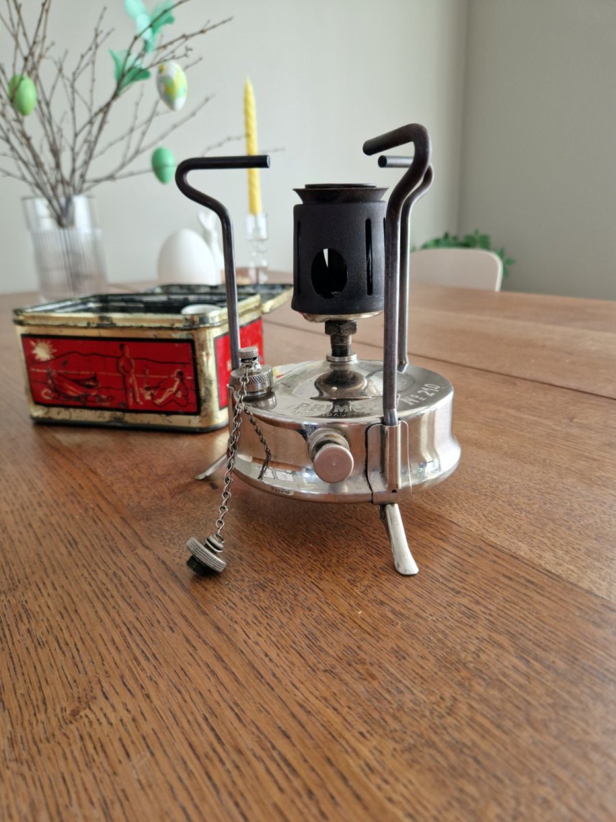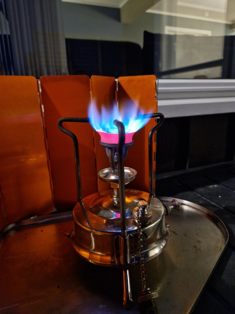 13. Høvik Verk No.210 ramlet inn døra. Under prøvefyring kunne man konstantere at det satt mye snacks bak dysen. Endte opp med et primusbad, piperensere, litt stålull å børsting. Joda det ble liv I denne også med noen optimus deler jeg hadde liggende. Nå har jeg litt av hvert å bruke av brennere, så nå er det stopp 😆 Ved ankomst Etter primusbadSyns det ble en fin primus. Faktisk lett og pakkbar.Brenner faktisk overraskende rent disse gamle greiene. Kult med de grønn flammene som kommer i starten på en slik primus, hva er grunnen?