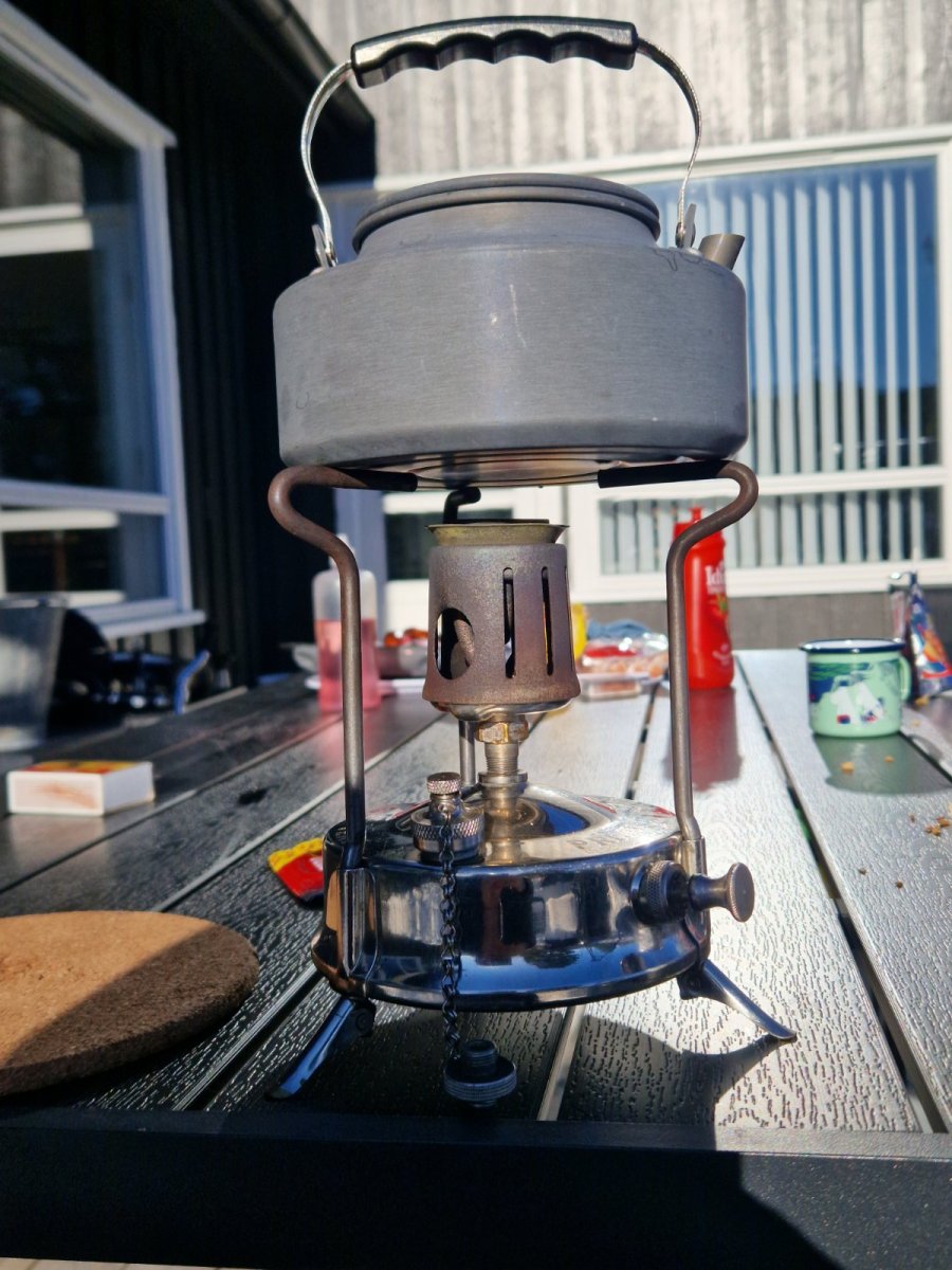 10. De grønne flammene er borte nå, det er vist vanlig hvis det er lenge siden den er brukt. Har sett noen bilder av det på CCS forumet Bestilte repkit av en på finn, det holder i første omgang. Som du sier så er den konkurranse dyktig med det meste på markedet, slettes ingen dum brenner. Har trua på dette kokeaparatet, det er simpelt å bruke å har relativt få deler som kan gå i stykker. En 111 føles en del skjørere enn en no.210/21. Det kan gått være, det må være en eller annen kjemisk reaksjon. Ikke bekymret, bare fascinert da jeg ikke har sett det på andre brennere som er laget i messing. Ja, jeg har sett bilder av det før, jeg vet det ikke er uvanlig når de har stått lenge. Men hvorfor akkurat disse å ikke nyere type brennere med messing deler? Kule bilder forresten, jeg hadde ikke mobilen med meg så jeg fikk knipset bilde av mine grønne flammer. Får bli i 2063 😂 Grilling av pølser på bålpanna å koking av vann til solbertoddy og kakao. Jeg digger den 🤭